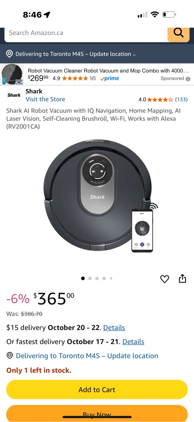 38Looking to sell my brand new Shark AI Robot Vacuum! ready to keep your home clean. This model (RV2001CA) features IQ Navigation, Home Mapping, and AI Laser Vision, making it super efficient. It also self-cleans and works with Alexa for easy control