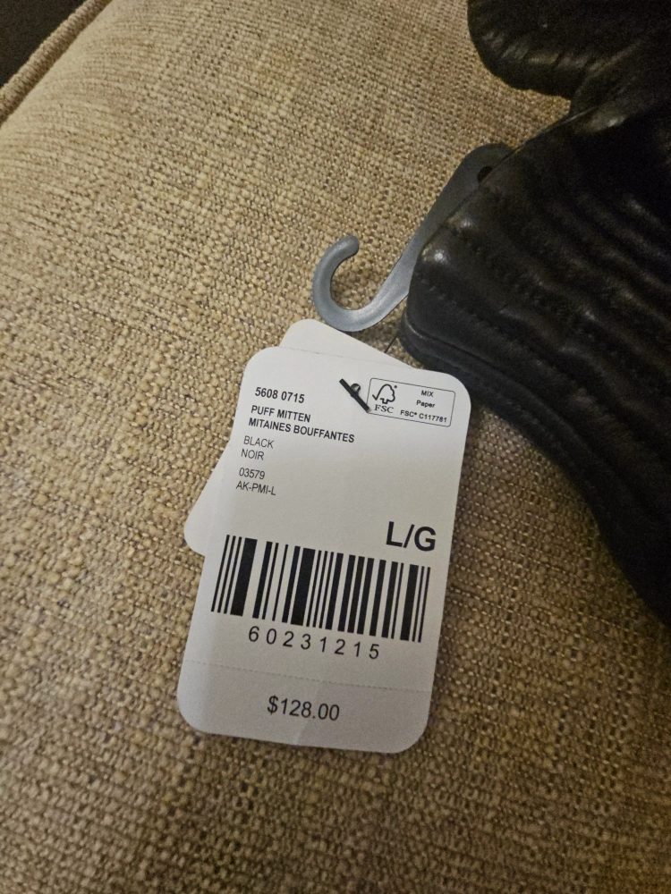 Keep your hands warm with these Roots Puff Mittens! They are black and a size large. The tag shows they were originally bought for $128.00