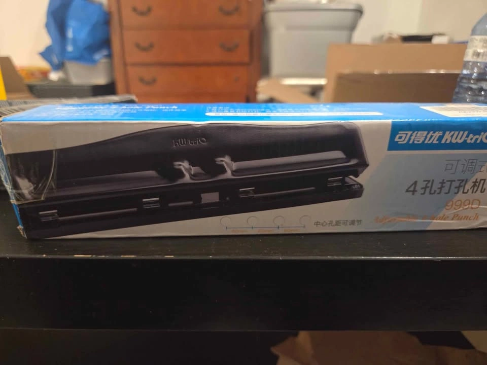Adjustable circle punch for precise hole punching needs! Comes in original packaging with a KWtriO 999D model featured. Perfect for crafting, office use, or DIY projects.