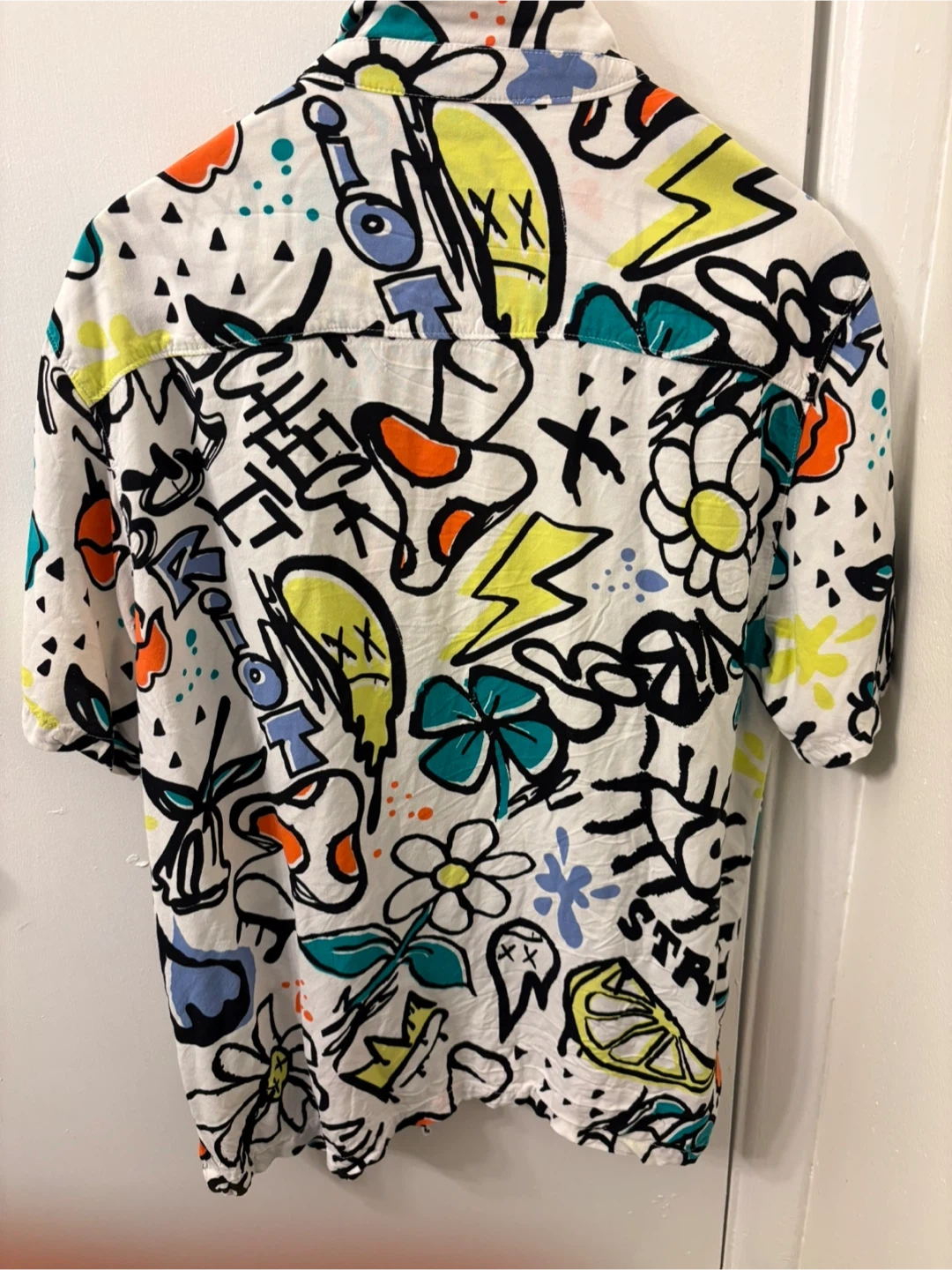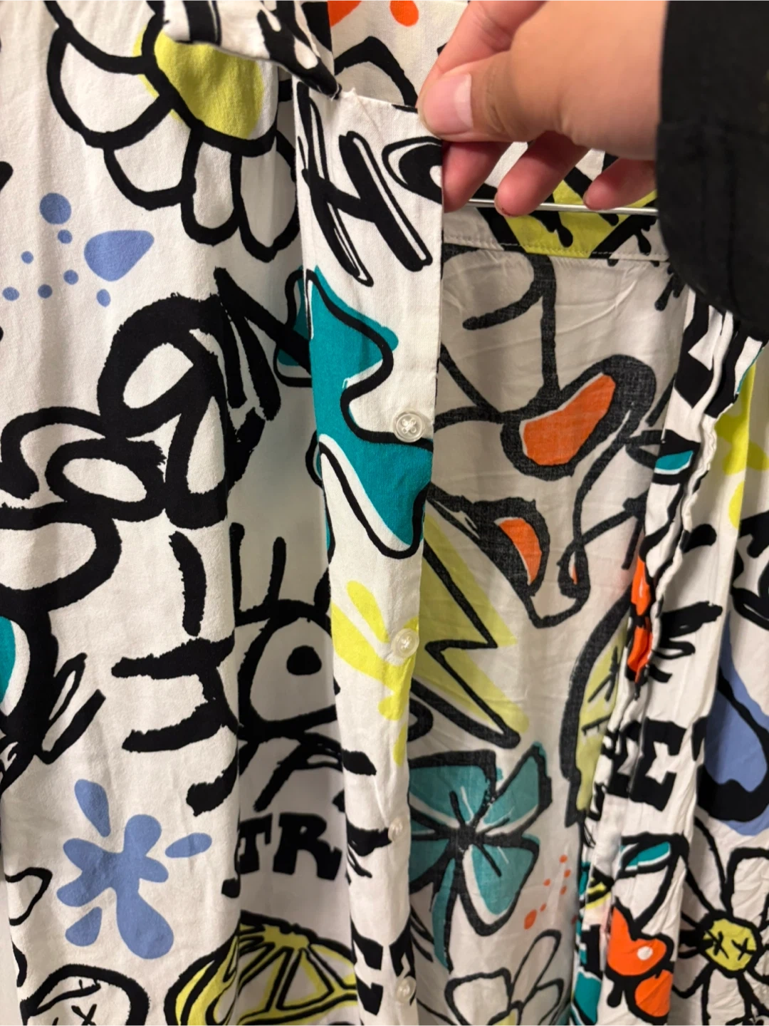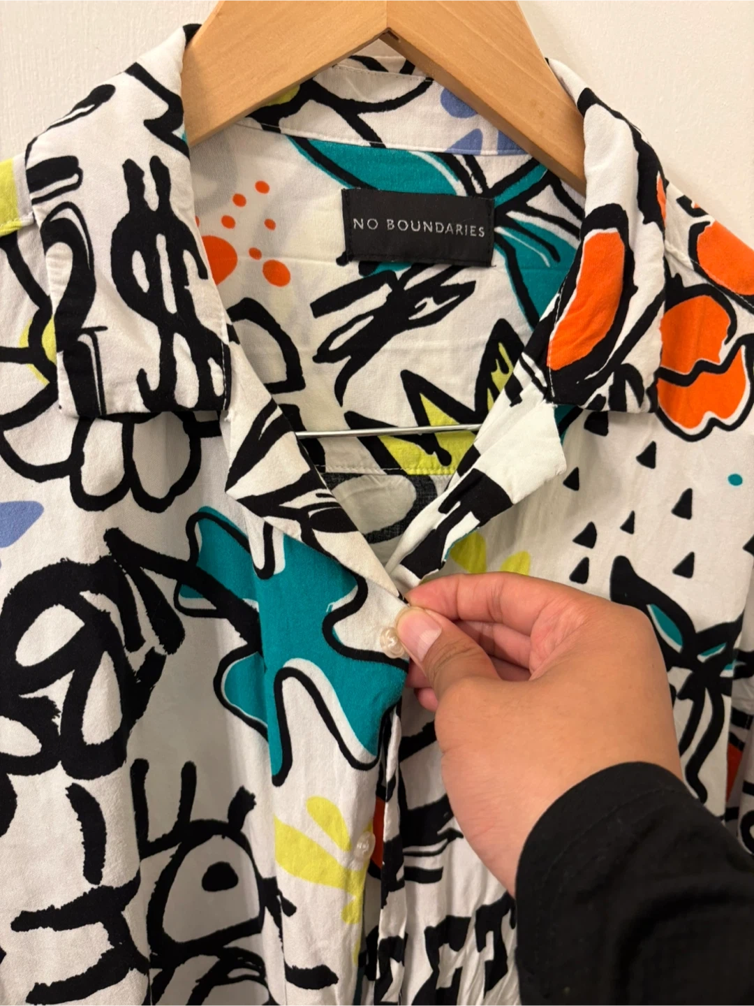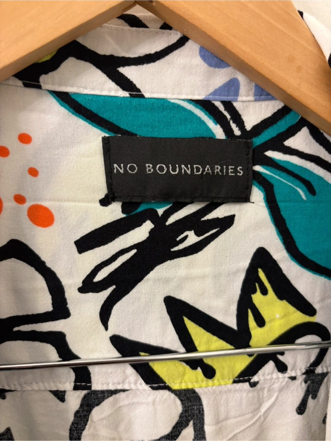 25Here's a fun patterned shirt from No Boundaries! It's white with a colorful design. Great for adding a pop of color to your outfit.