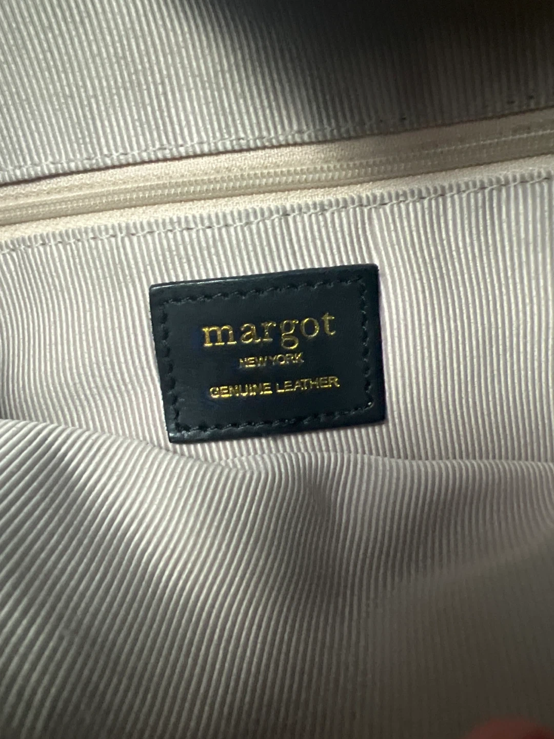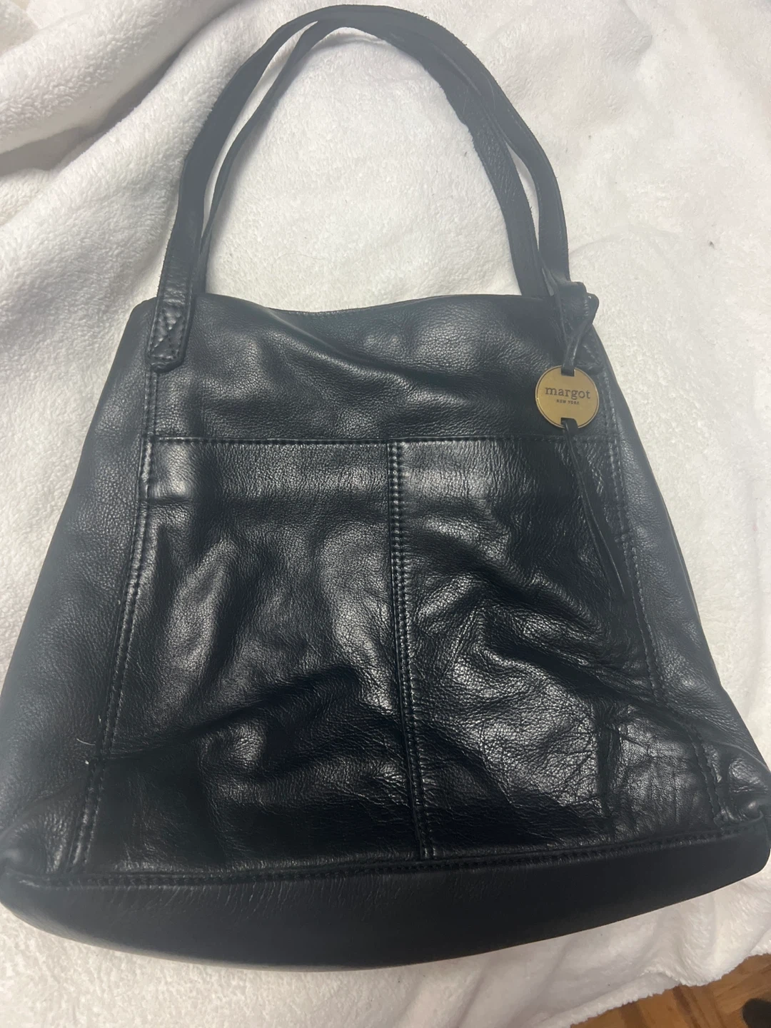 I'm selling a Margot New York tote bag! It's made of genuine leather and is black in colour. It's a great size for everyday use and has a classic, stylish look