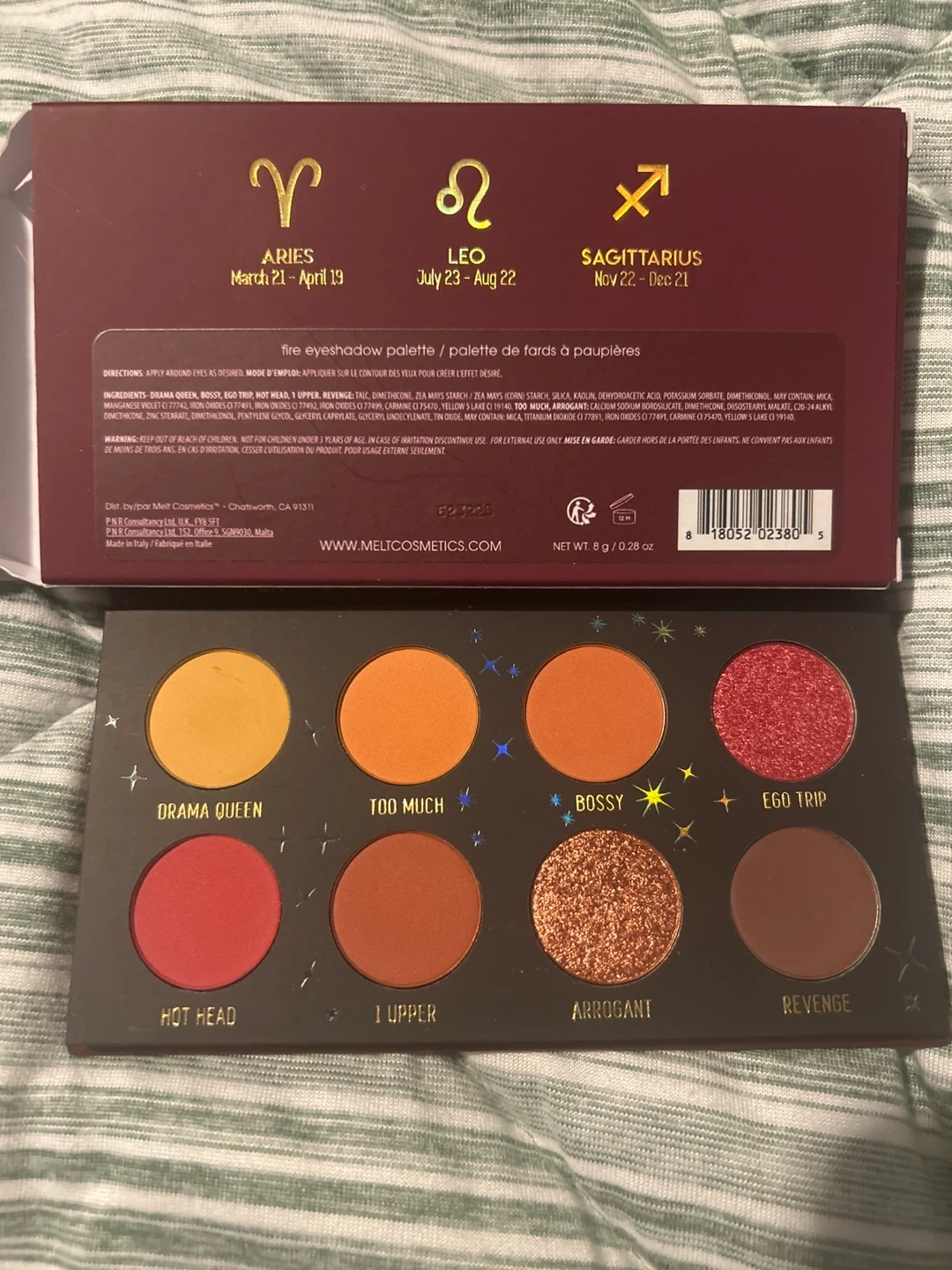 414Melt Cosmetics eyeshadow palette from the Bad Side Zodiac collection, the Fire palette! This palette features shades inspired by Aries, Leo, and Sagittarius. Perfect for creating warm and fiery looks New Cash at time of pick up from Mississauga SERIOUS INQUIRIES ONLY