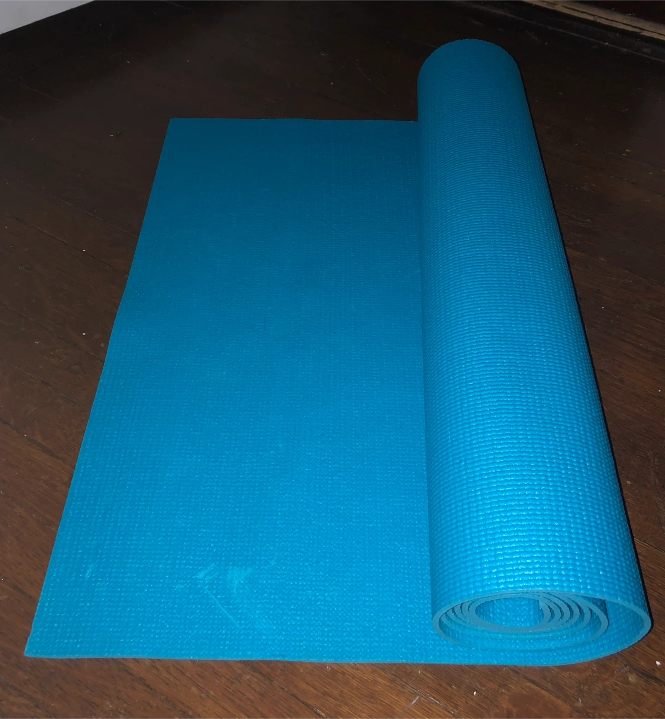 Selling a gently used blue yoga mat. It's in good condition and ready for your next workout or meditation session! It is lightweight and portable, making it easy to take to classes or store at home