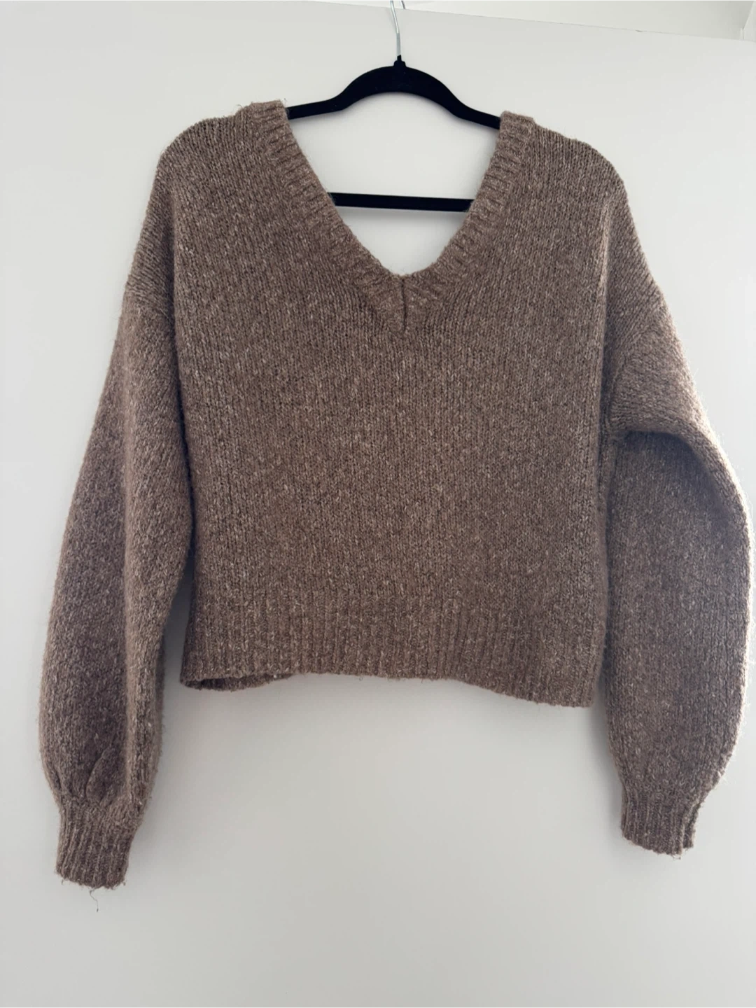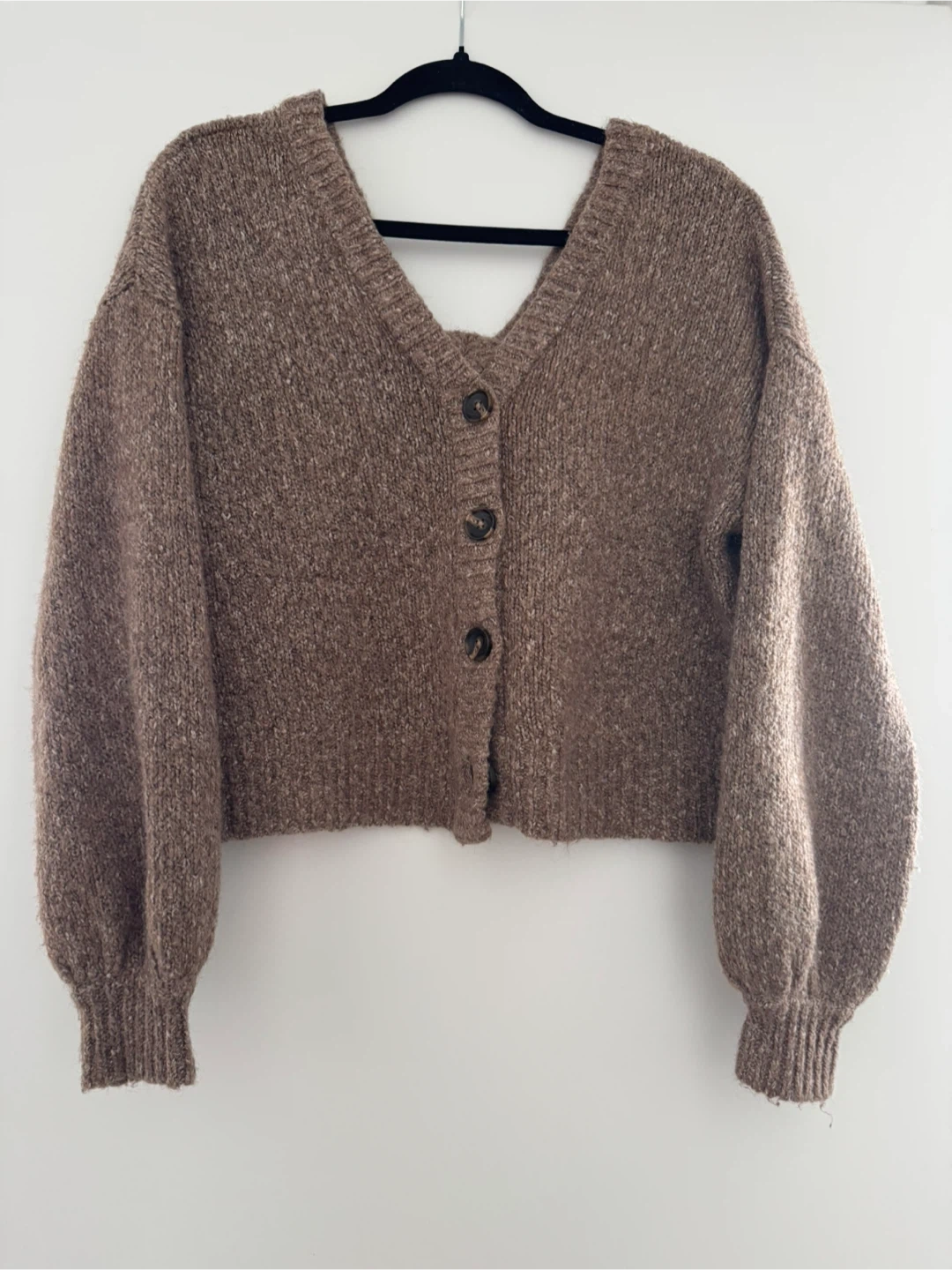 Cozy up in this knit cardigan! It's a lovely brown colour. Perfect for layering on those chilly days! Small size but oversized (fits s, m and L)