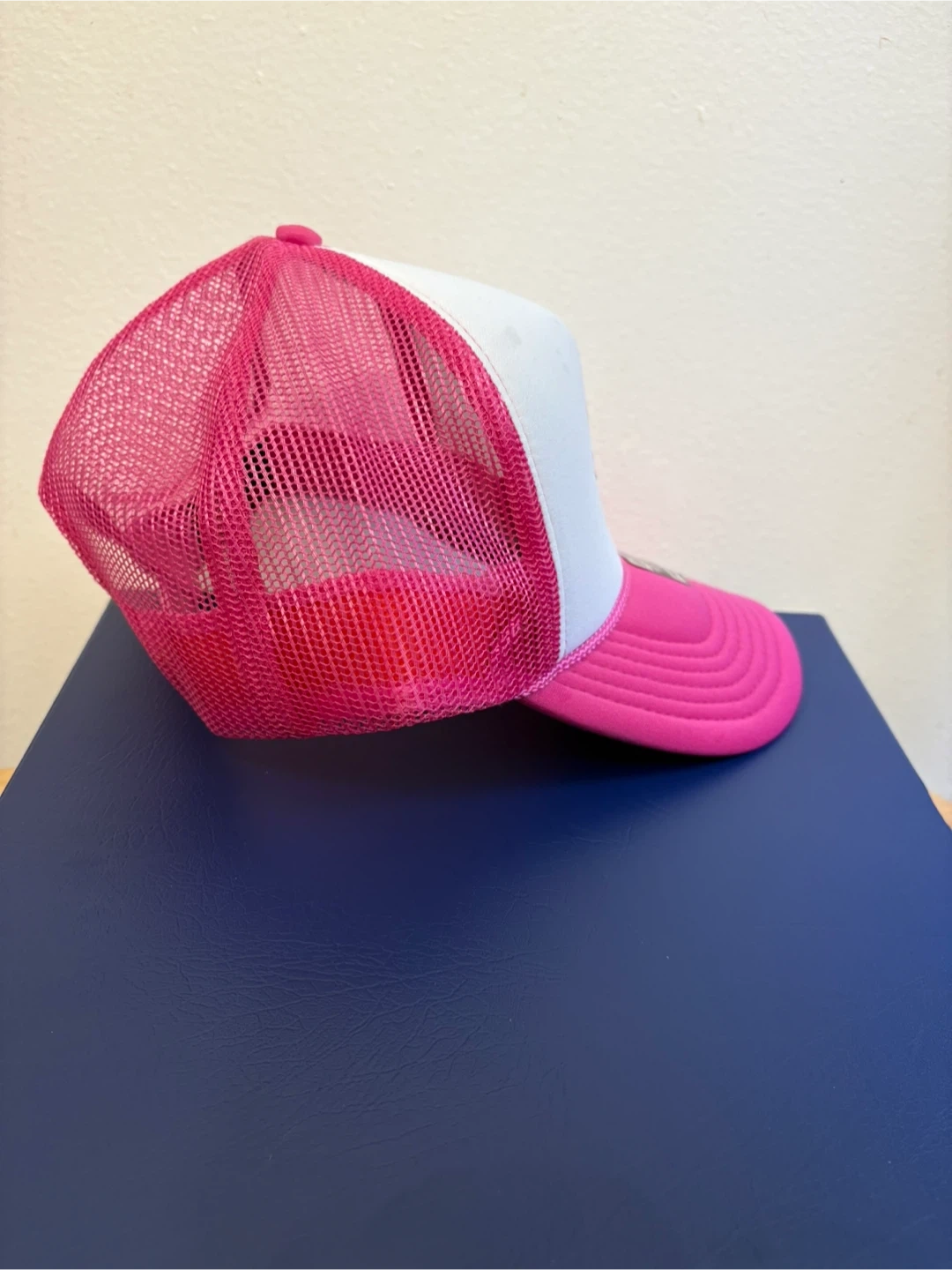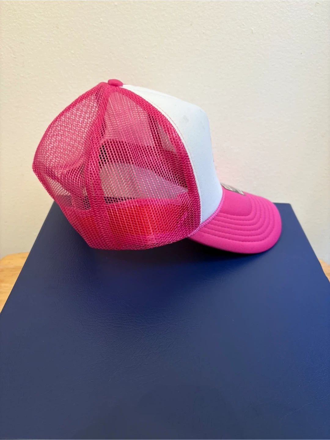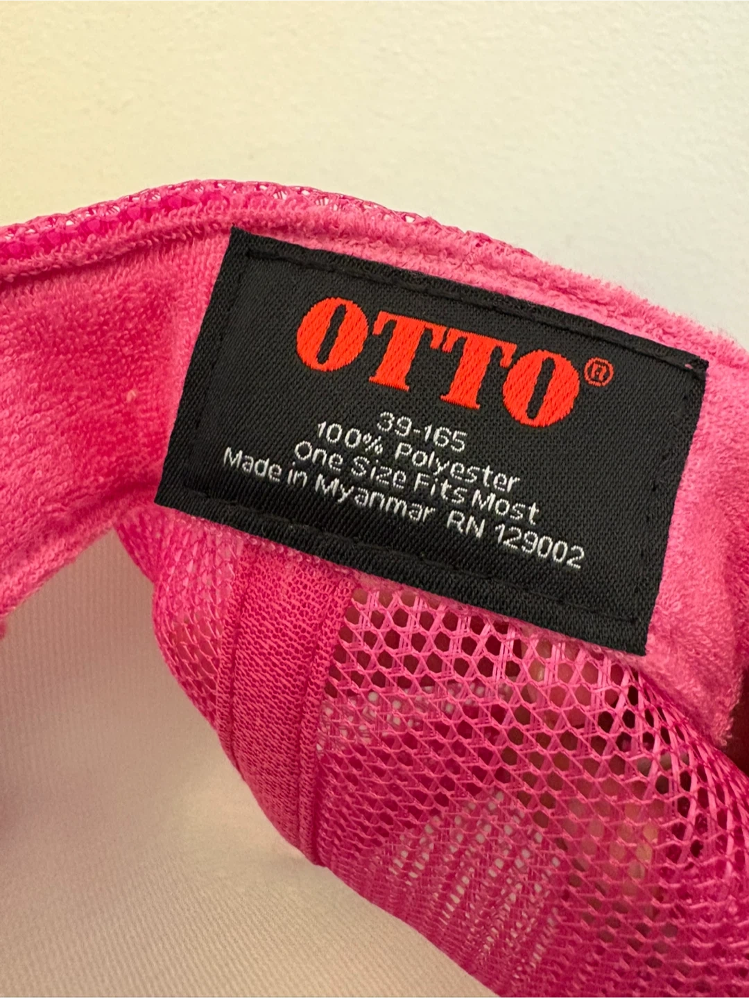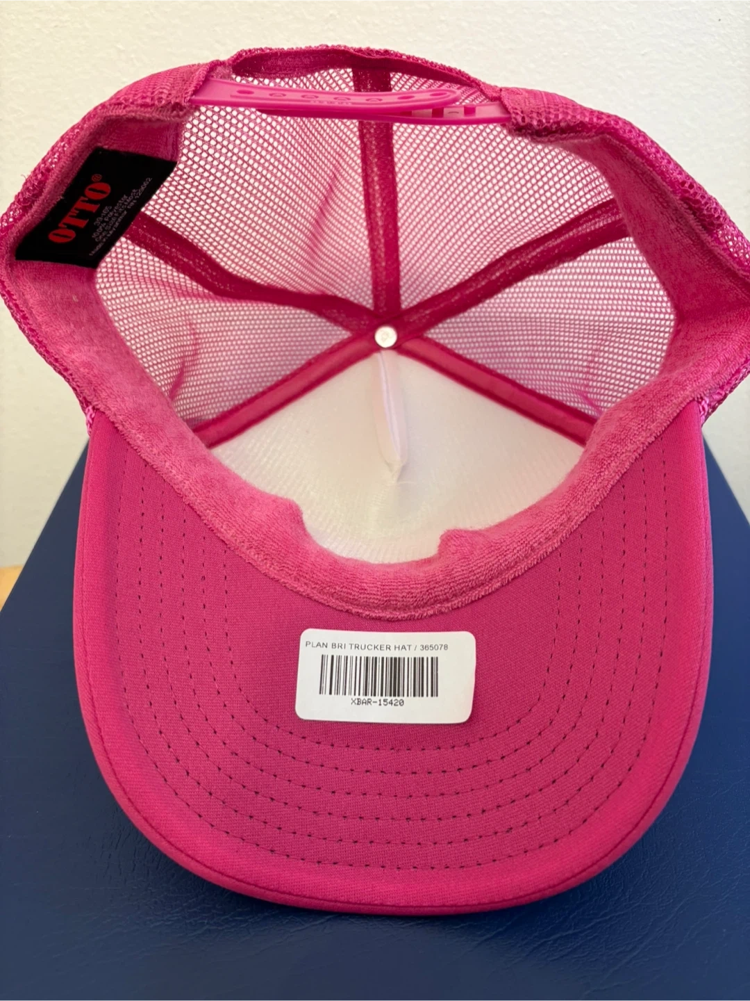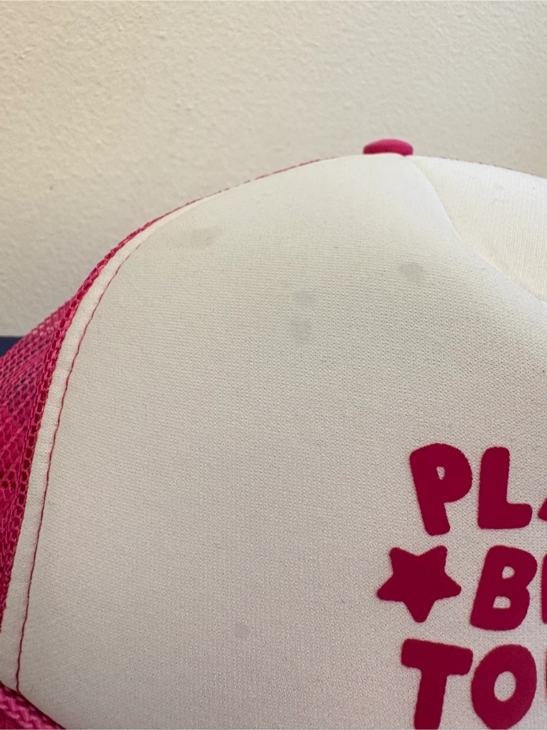 25Selling a cute OTTO trucker hat! It's pink and white, with 'PLAN BRI TOUR' on the front. Please note there are some small stains on the white part of the hat.