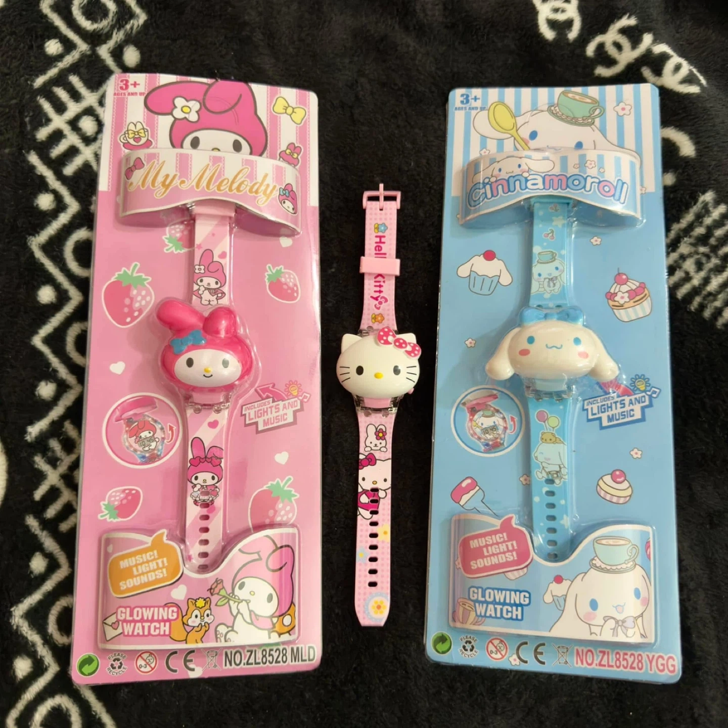 Check out these adorable Sanrio character watches! They light up and play music, perfect for kids 3+. Choose from Hello Kitty, My Melody, or Cinnamoroll. Each watch comes in its original box.