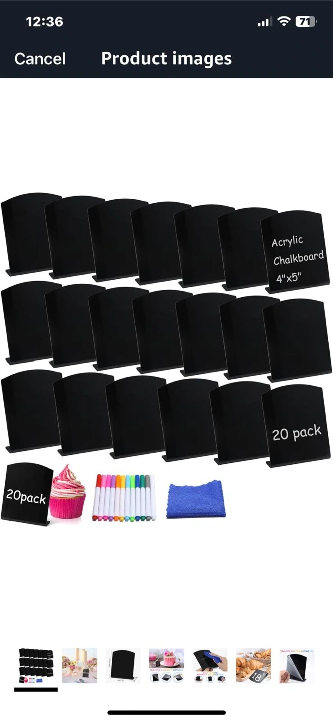 570New- Selling a 8 pack of acrylic chalkboard signs. They measure 4 inches by 5 inches. These signs are easy to write on and wipe clean without any ghosting. They are reusable and come with a cleaning cloth and markers!