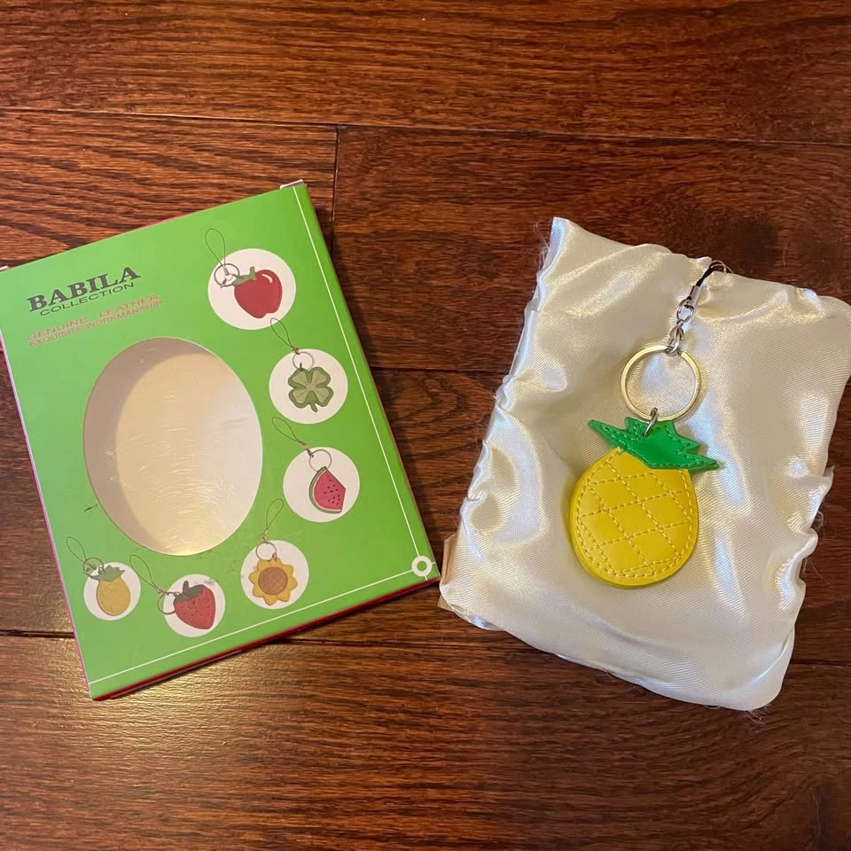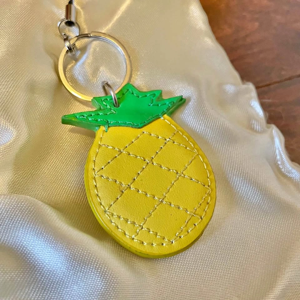 75Pick up at Don Mils & Steeles Vibrant yellow pineapple with a green top, made of genuine leather. Perfect for adding a tropical touch to your bag or keys. Comes with both a strap and a round keyring, so you can use it as a bag charm or a keychain. Includes original box. Condition: NEW Perfect for those who loves bag charms from coach, kate spade, michael kors and Longchamp etc