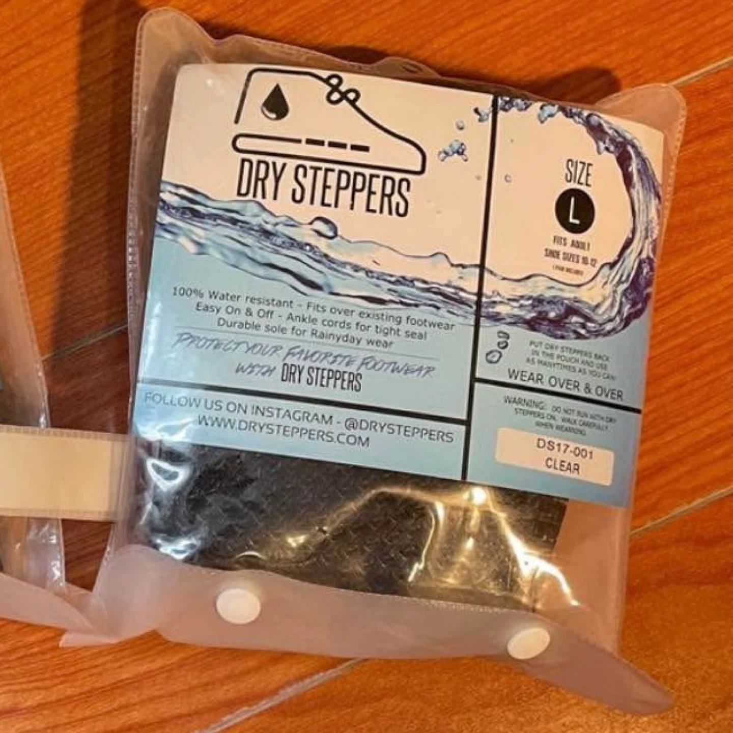 64Pick up at Don Mills & Steeles. Size: L (Men’s US 10–12) Outer sole length: 12.2 in (31 cm) NOTE: please measure the outer sole length of your own shoes and compare it with the Dry Stepper’s measurements (31cm) to make sure they’ll fit for sure. Mostly you’ll need to size up. Reviews on YouTube https://youtu.be/ihleHFOsgAk?si=22TBDgR-tba5X83G ————- Clear waterproof shoe covers with black and white accents. Perfect for protecting shoes from rain. Conditions: NEW in package (bought in Japan) Keep your sneakers dry even on rainy days! These clear covers protect your shoes from rain and snow while letting your sneaker design show through. • Made of semi-transparent vinyl with a durable rubber sole featuring small grips to prevent slipping on wet surfaces • Front zipper and adjustable drawcord for a secure fit around your sneakers • Compact and foldable after drying, making them easy to carry without taking up space • Thin sole ensures natural walking feel About DRY STEPPERS: Brooklyn-based brand by designer Rich Franklin, known for designing sneakers for Beyoncé and Jay-Z. Inspired by people using plastic bags on their shoes in the rain.