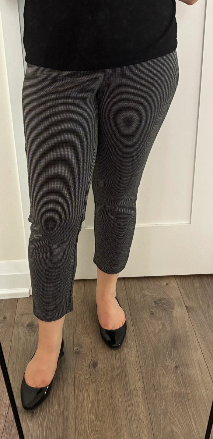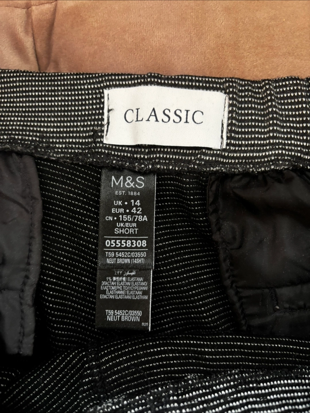 Selling a pair of M&S Classic pants in grey colour. They are a size 14 also fits Small to Medium. The material appears to be a blend, including elastane for a comfortable fit. These pants are in great condition and ready for a new home!