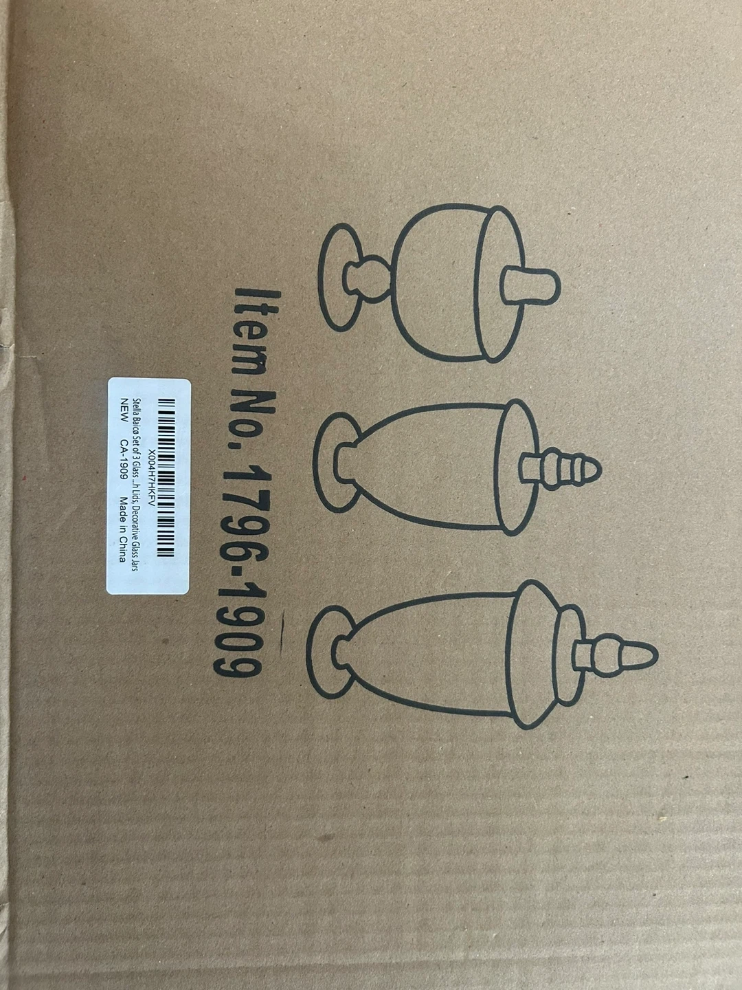 Selling a new set of 3 decorative glass jars. They are in their original box, ready to add a touch of elegance to your home!