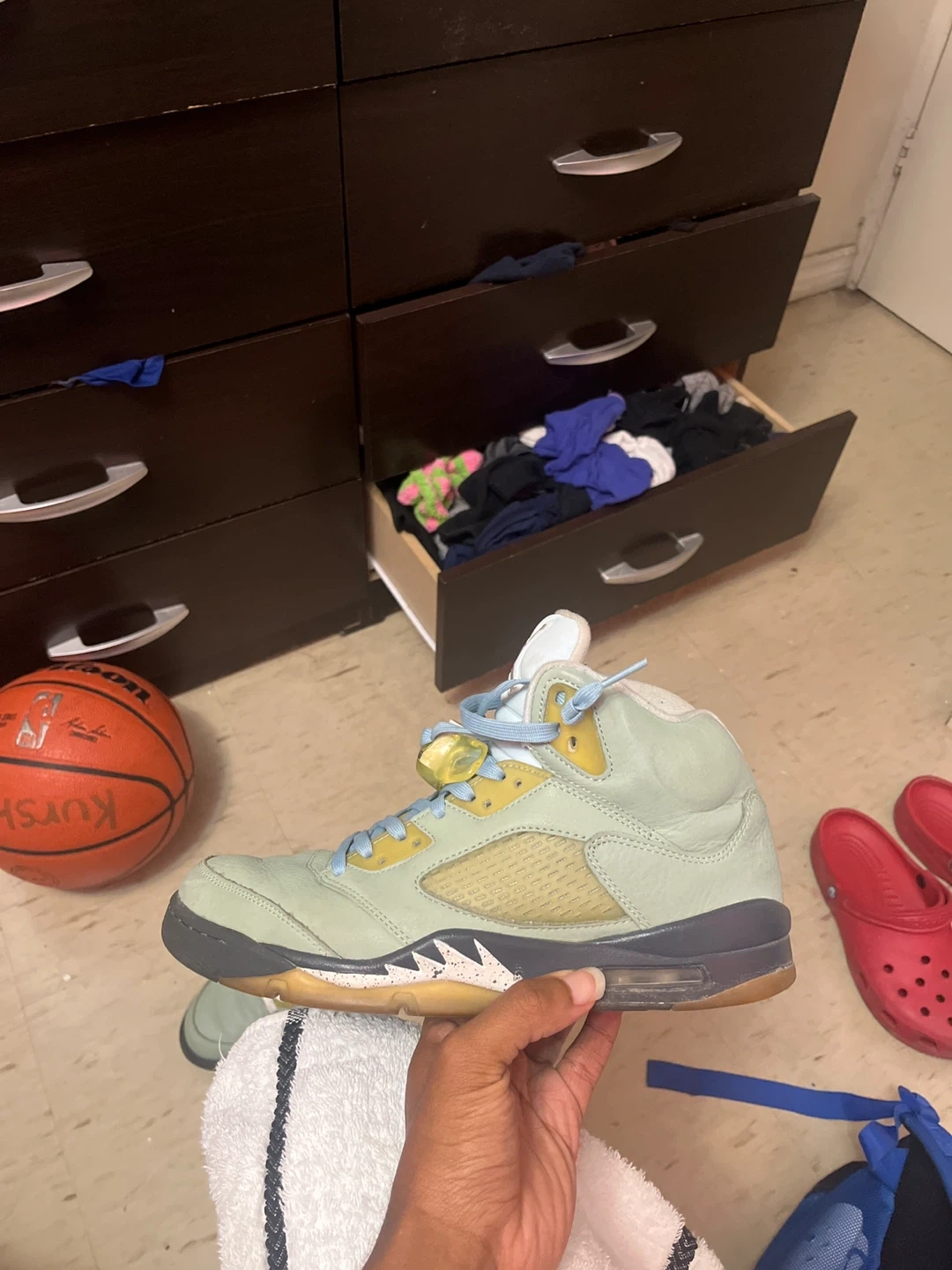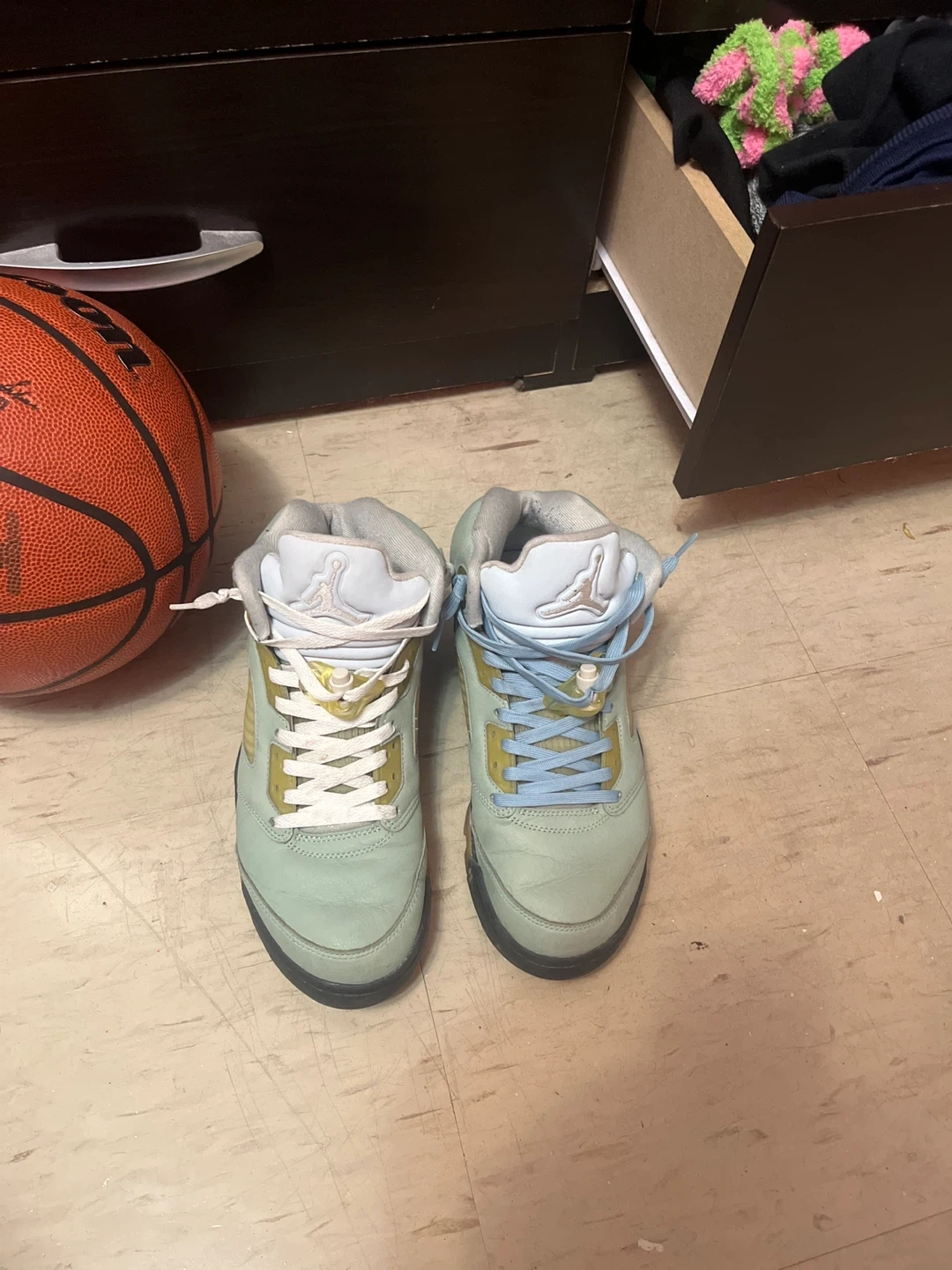 Selling a pair of Air Jordan 5 Retro SE Easter sneakers from 2022. They are a light green colour. Great for your collection or for everyday wear!