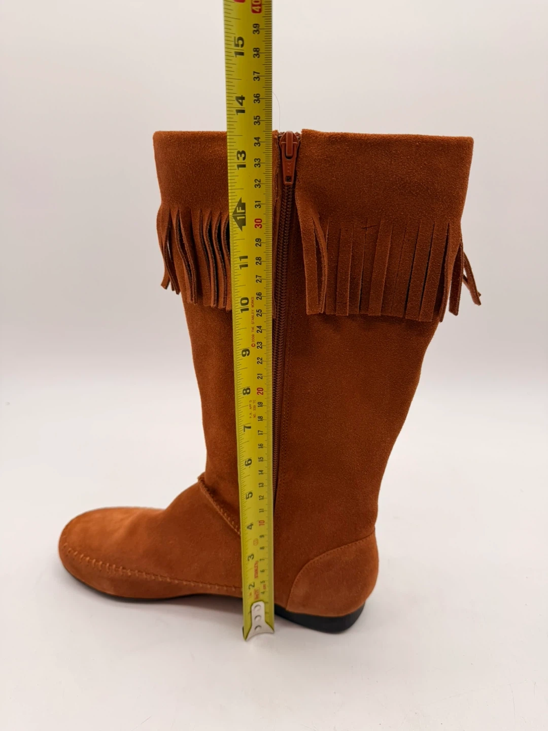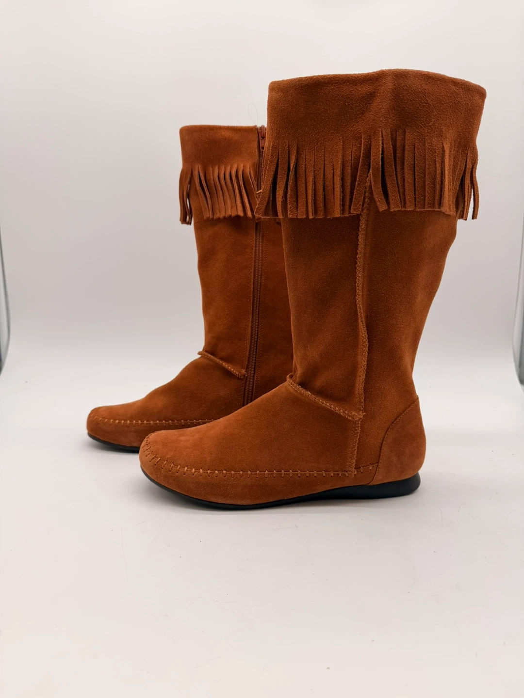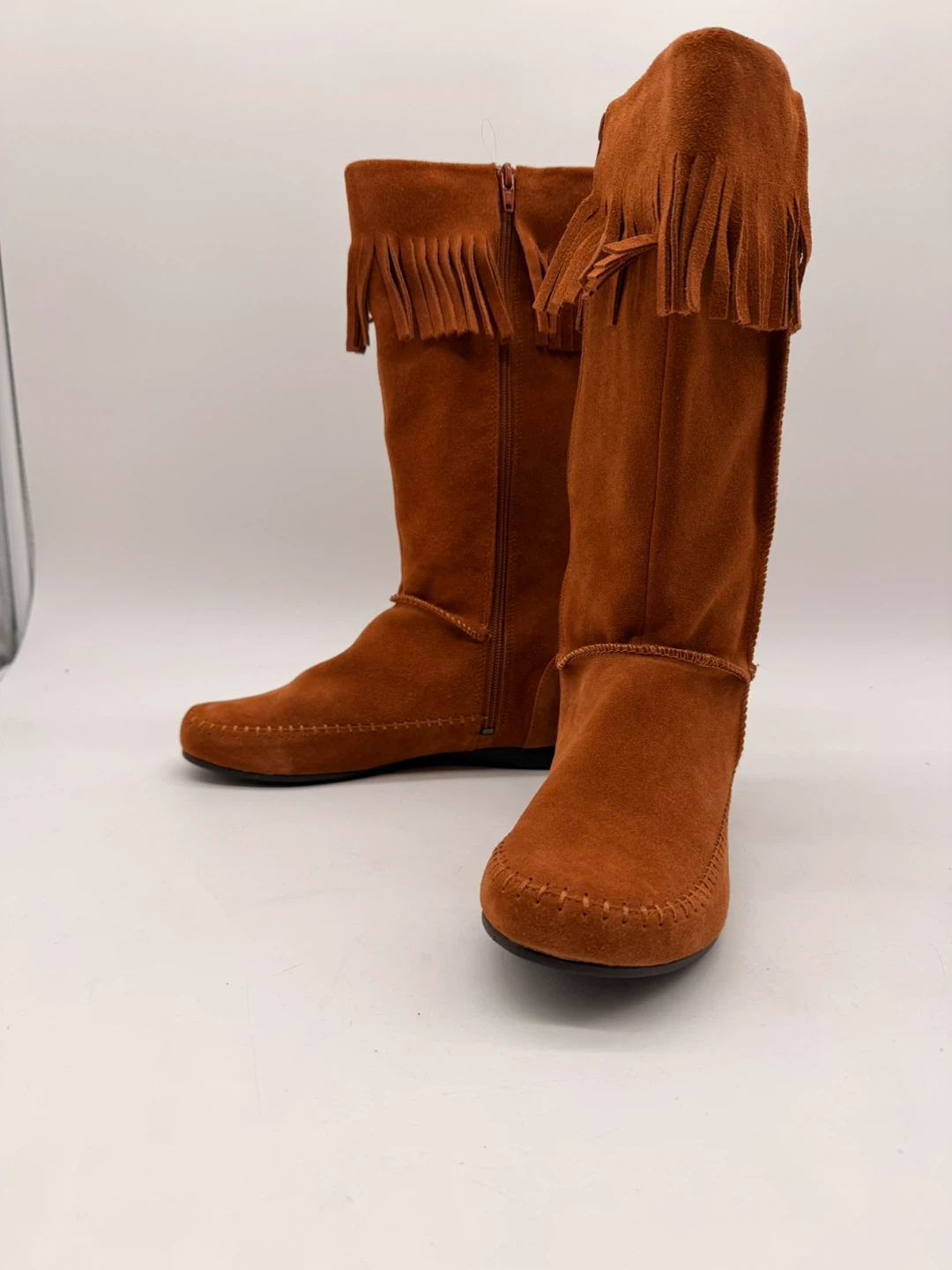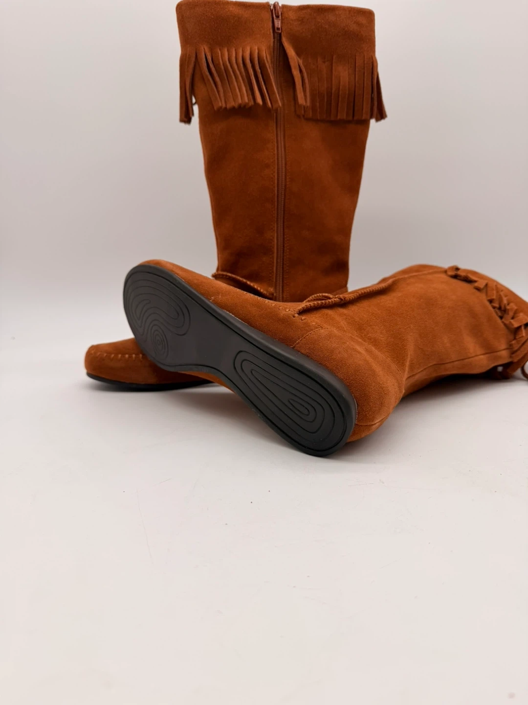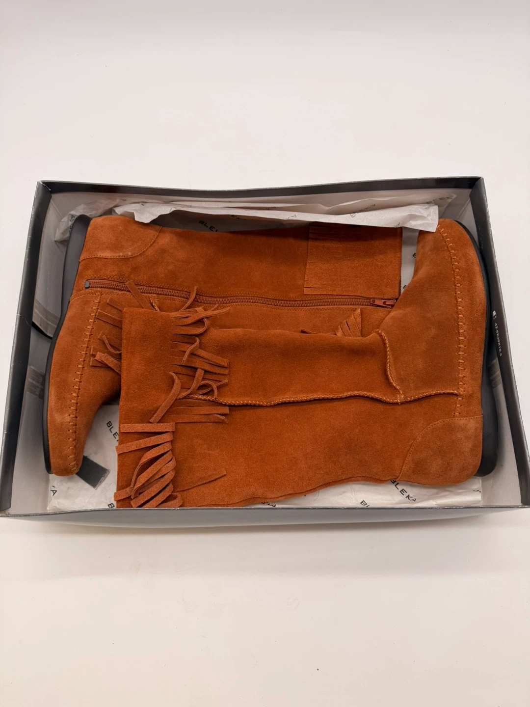 119Beautiful BLEKA Sundancetan mid-calf boots in soft tan faux suede with fringe detail. Features: • Size 8 (Women’s) • Soft suede-like finish • Side zipper closure • Lightweight rubber sole • Approx. 13 inches tall • Comes in original box Originally priced at $120, never worn. Pickup in North York or shipping available. 20 up