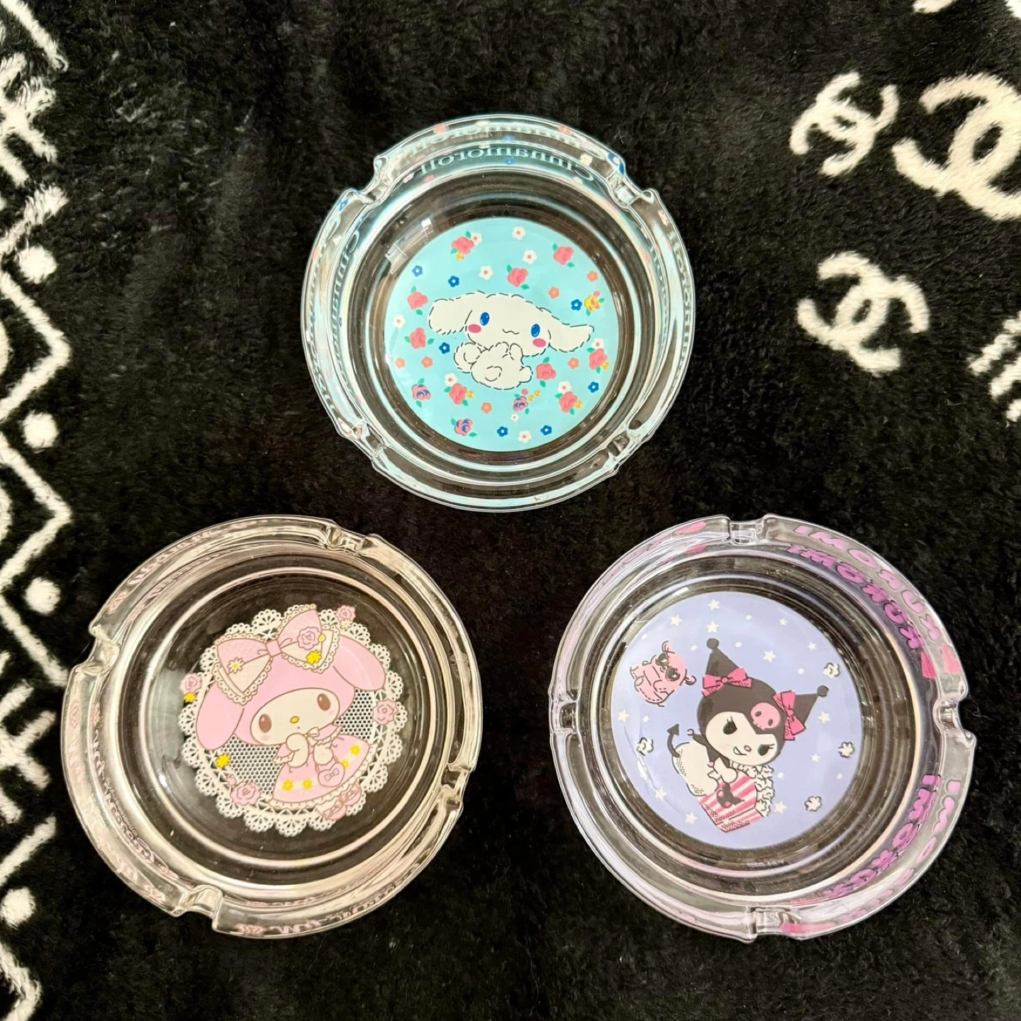 Selling a set of three adorable Sanrio Jewelry Tray! The set includes Cinnamoroll, My Melody, and Kuromi designs. They're clear glass with cute character designs on the bottom. Perfect for any Sanrio fan!