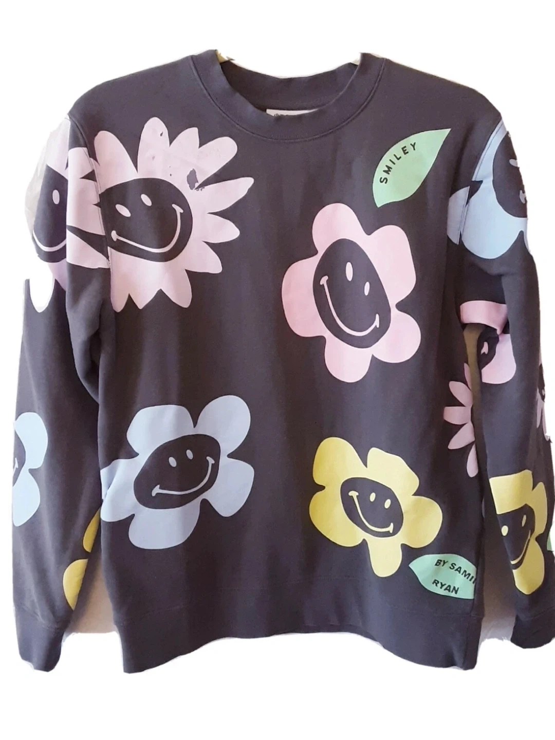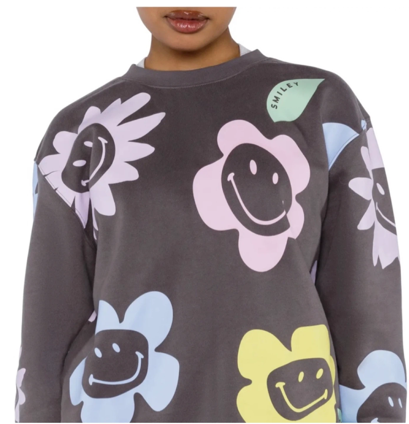 A bubbly cascade of statement-scale Smiley flowers brings retro charm to a comfy crewneck sweatshirt in a snuggly oversized fit for that perfect slouch.