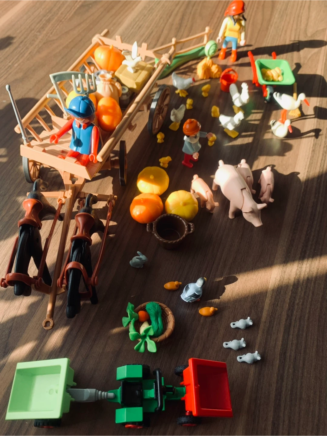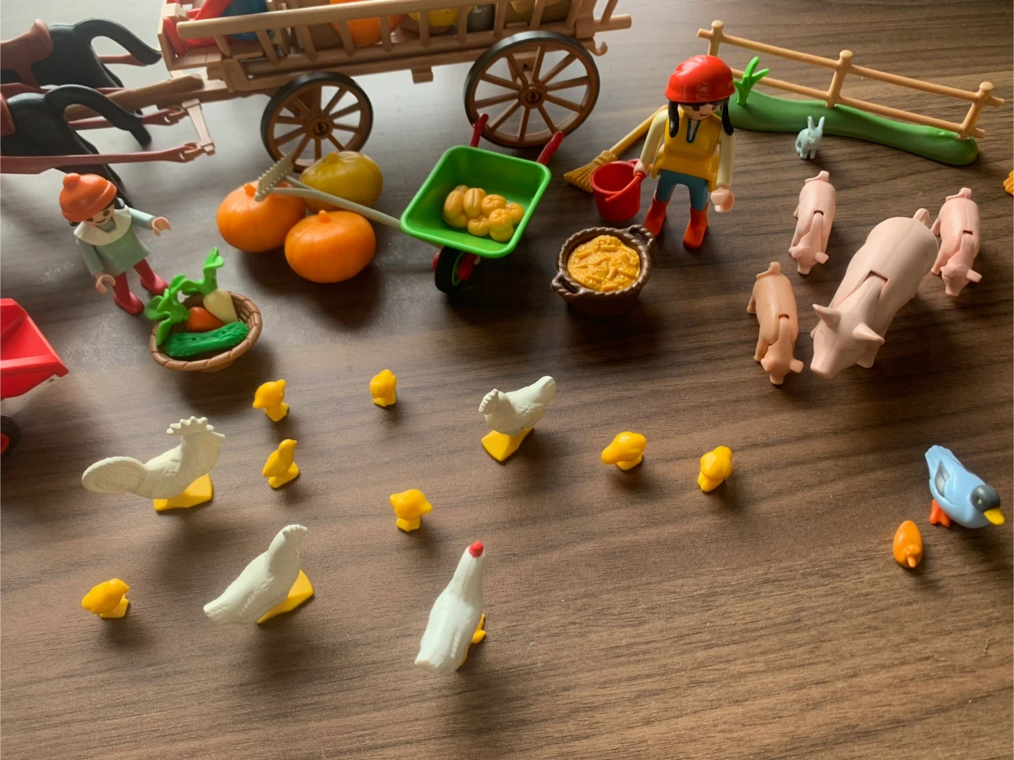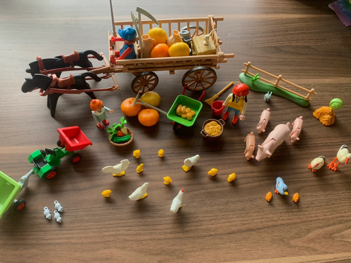 Selling a Playmobil farm set that includes various figures, animals, a cart, and accessories. It's a fun set for kids over 5 who enjoy imaginative play!