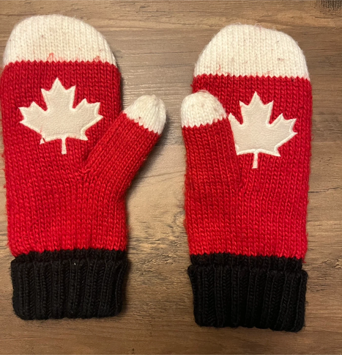 Keep your hands warm with these cozy Hudson's Bay Canada mittens! They feature the Canadian flag colours and Olympic rings, perfect for showing your Canadian pride. They are in great condition and ready for a new home