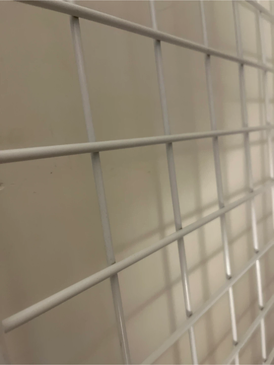 Selling a white metal grid panel. It's in great shape and ready to use for organizing or displaying items. It's a versatile piece that can be used in various ways around the house or in a shop. Feel free to message me if you're interested