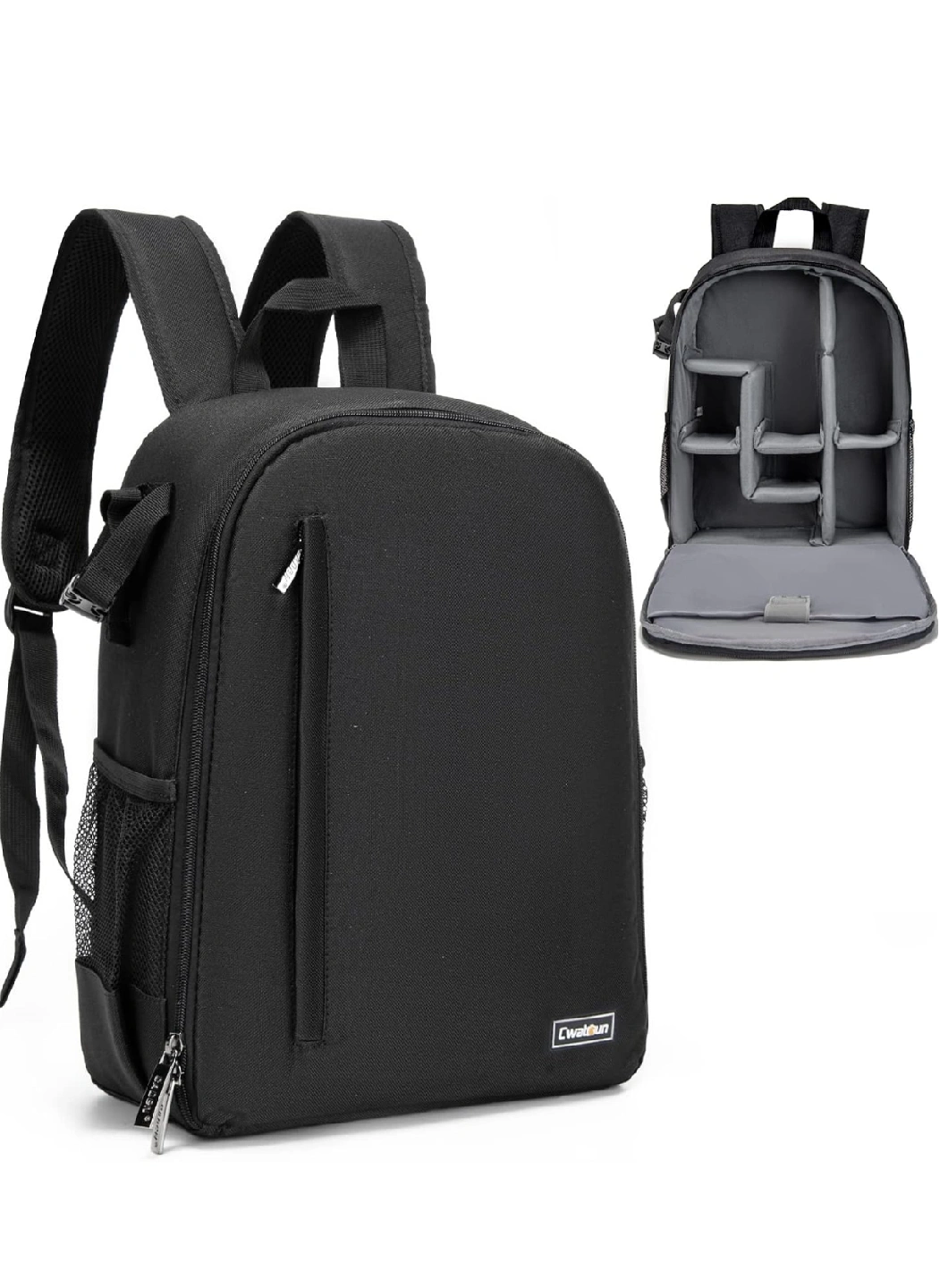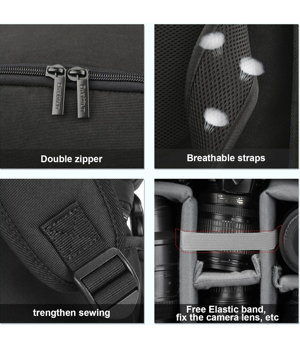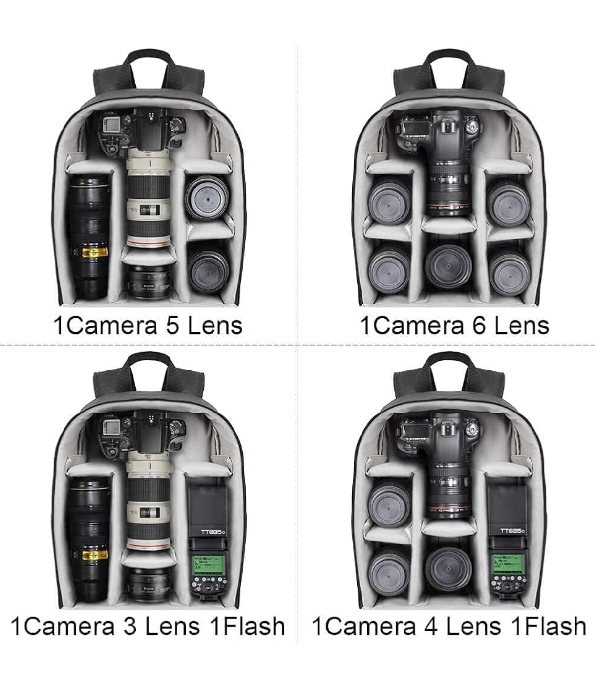 Can Hold 1 camera+4/5 lenses depending on lens size+tripod.