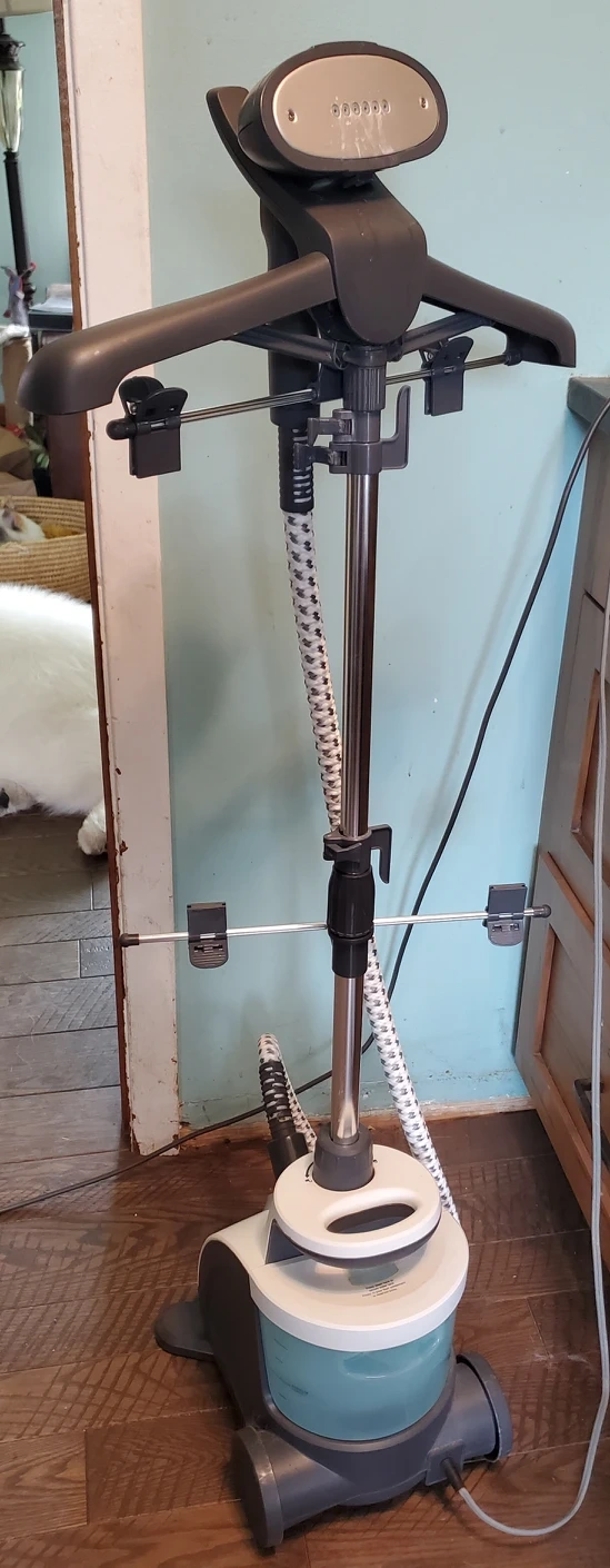 Conair has taken every advantage of its deluxe fabric steamers and put them into a compact, upright, very modern design steamer. It’s not only easier to set up than an iron and ironing board, but it’s gentle to fabrics, from delicate, sheer curtains to upholstery to business suits.