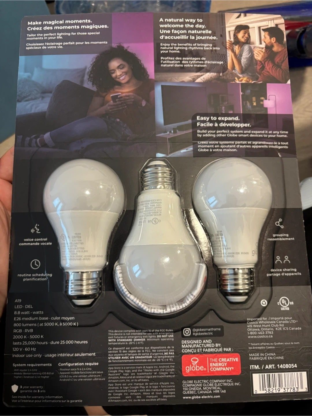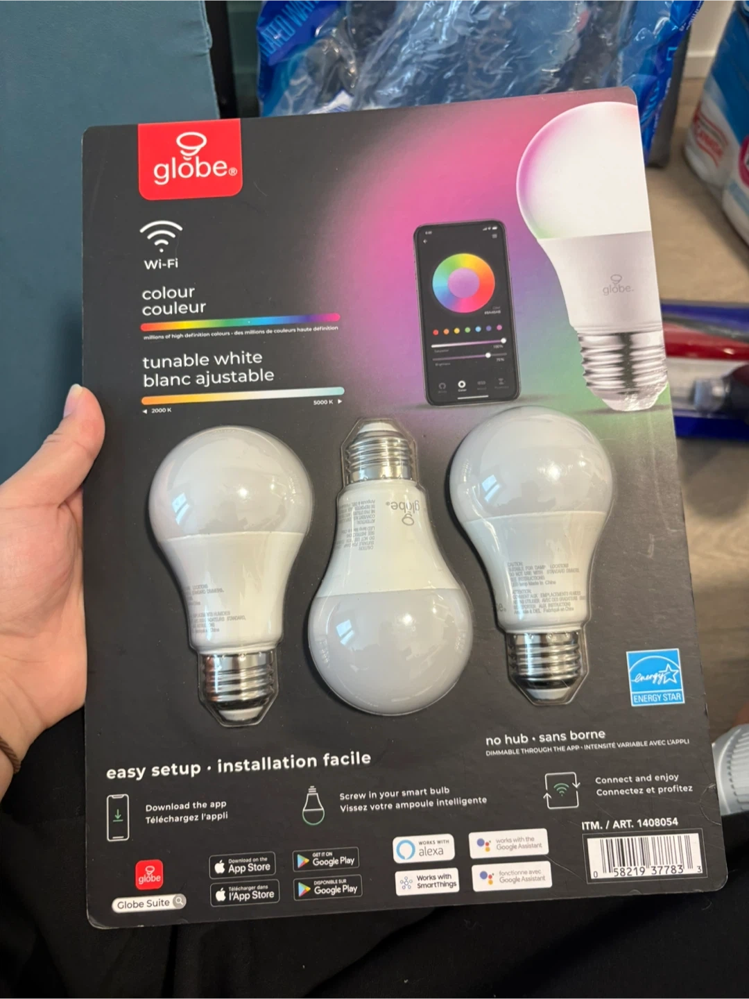 5β¨ Globe Wi-Fi Smart Colour Light Bulbs (3-Pack) β Brand New / Never Opened π‘ Smart colour & tunable white LED bulbs by Globe Electric β Brand new, sealed package β Works with Alexa, Google Assistant, SmartThings β No hub required β just connect via Globe Suite App β Adjustable from warm (2000K) to daylight (5000K) β Millions of RGB colours available β Energy Star certified π¦ Model: 1408054 β‘ Base: E26 standard π Easy setup through Globe Suite App (iOS & Android) π΅ Price: $25 (OBO) π Pickup in Markham / Richmond Hill area π« No delivery, cash or e-transfer accepted Perfect for smart home lighting β bedroom, living room, or office. Brand new, ready to connect!