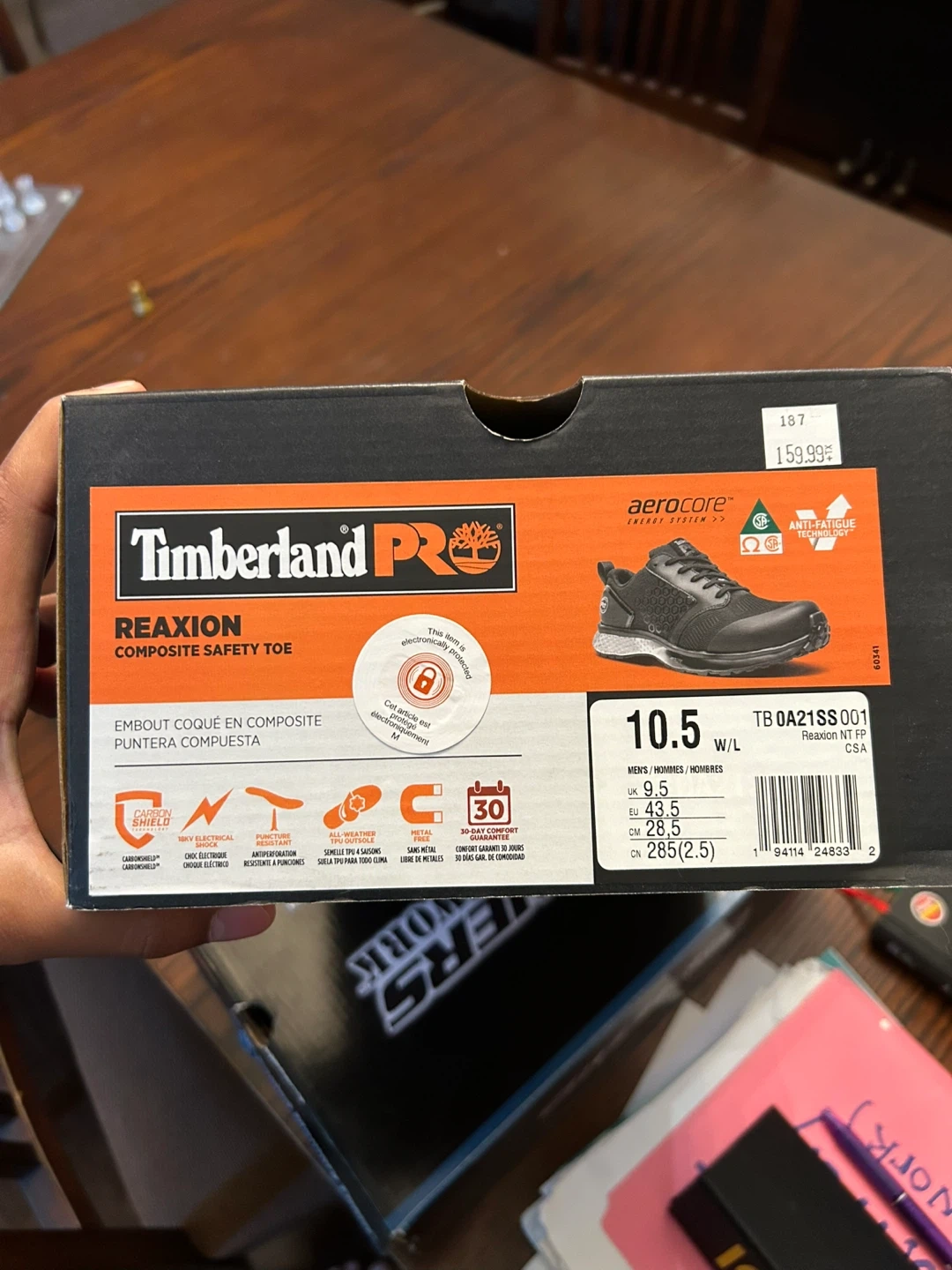 Selling a pair of Timberland PRO Reaxion Composite steel toe Safety shoes in size 10.5. They come in the original box. These shoes feature Aerocore technology for comfort and flexibility. They are also electrically hazard resistant and all-weather ready. Retails for $159.99