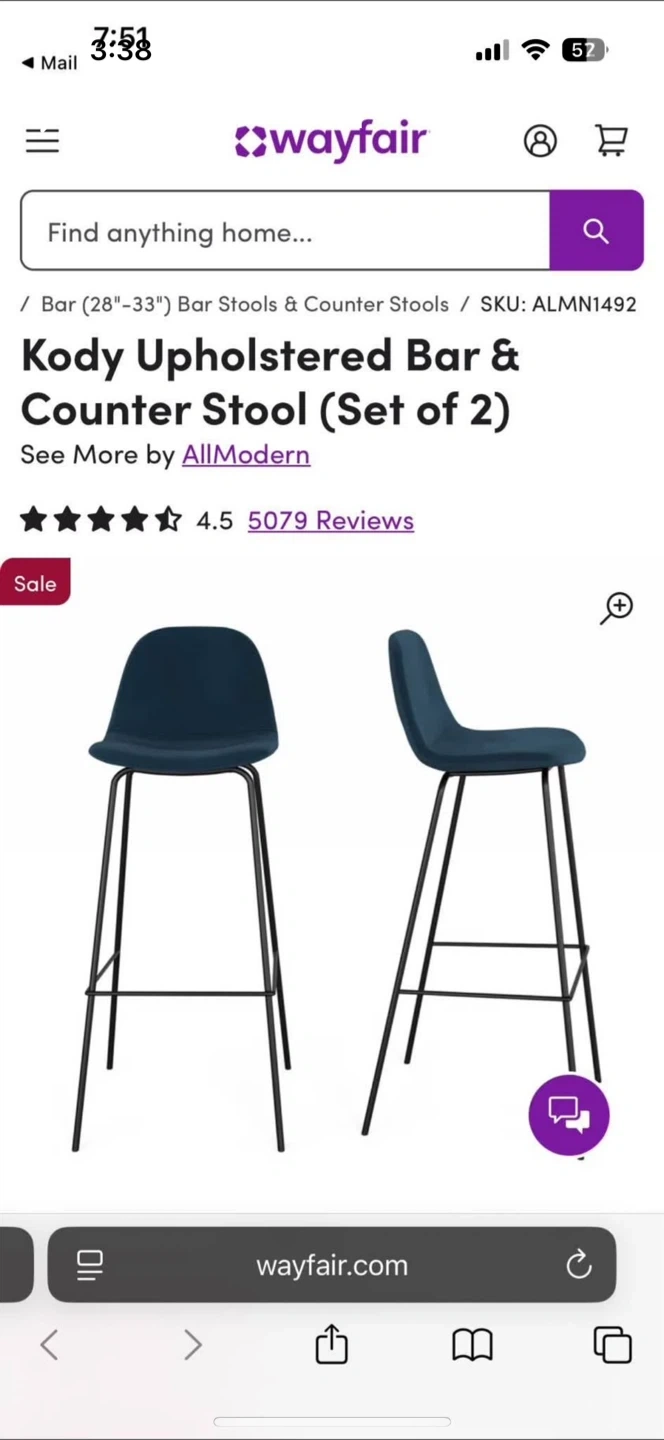 Selling a set of two brand new (still in the box) AllModern Kody upholstered bar and counter stools! They have a sleek design and would look great in any kitchen or bar area.