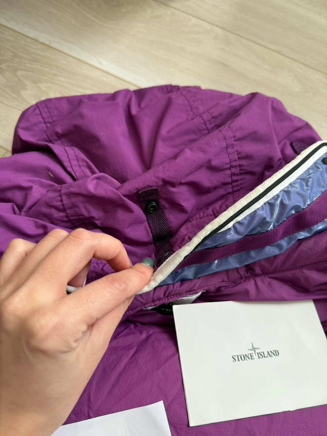 - Hood could be snapped back to show inner lining