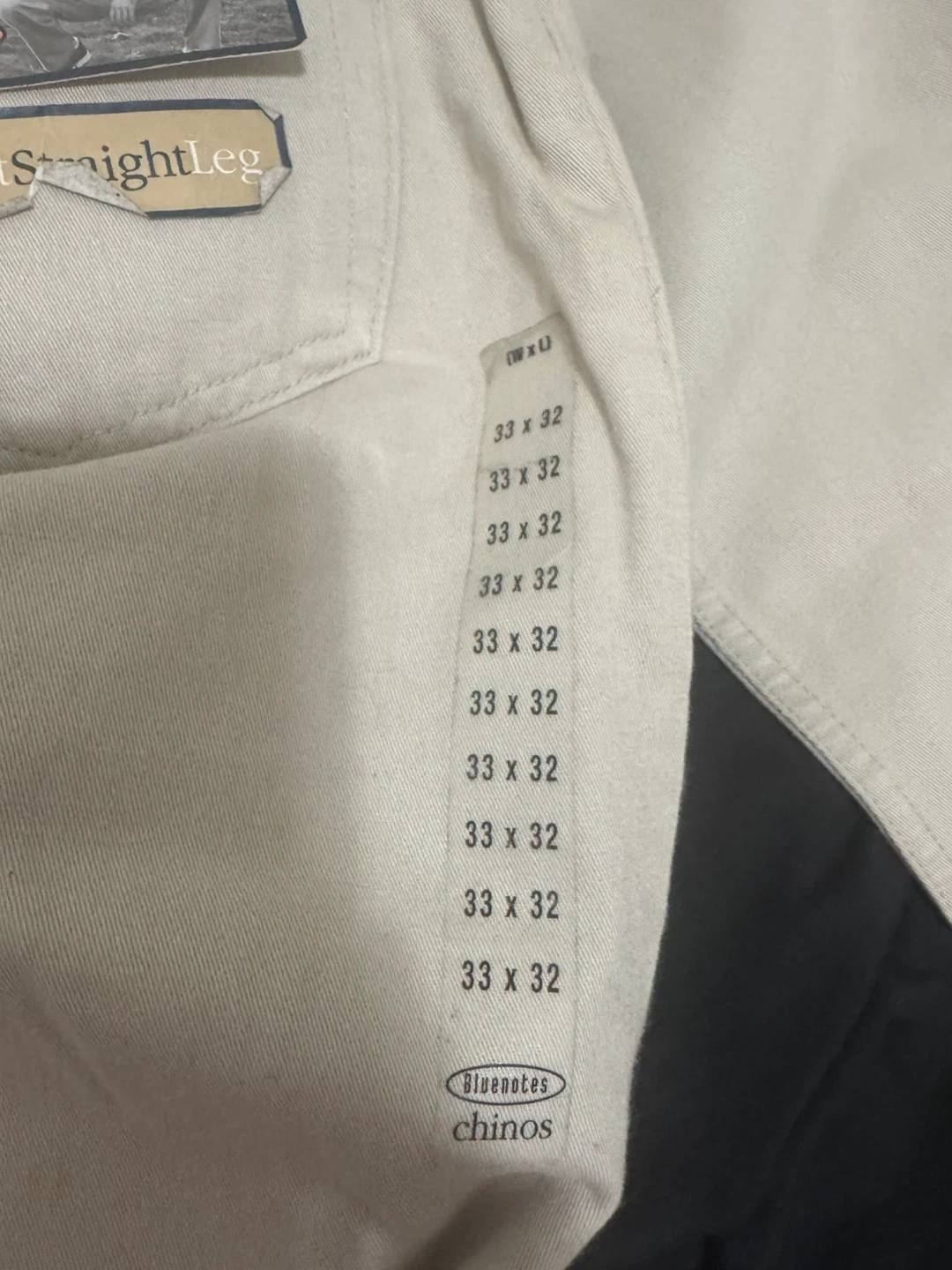 Selling a pair of Bluenotes chinos in size 33x32! They're a Eurofit straight leg style and made from a comfortable cotton blend. Great for everyday wear!