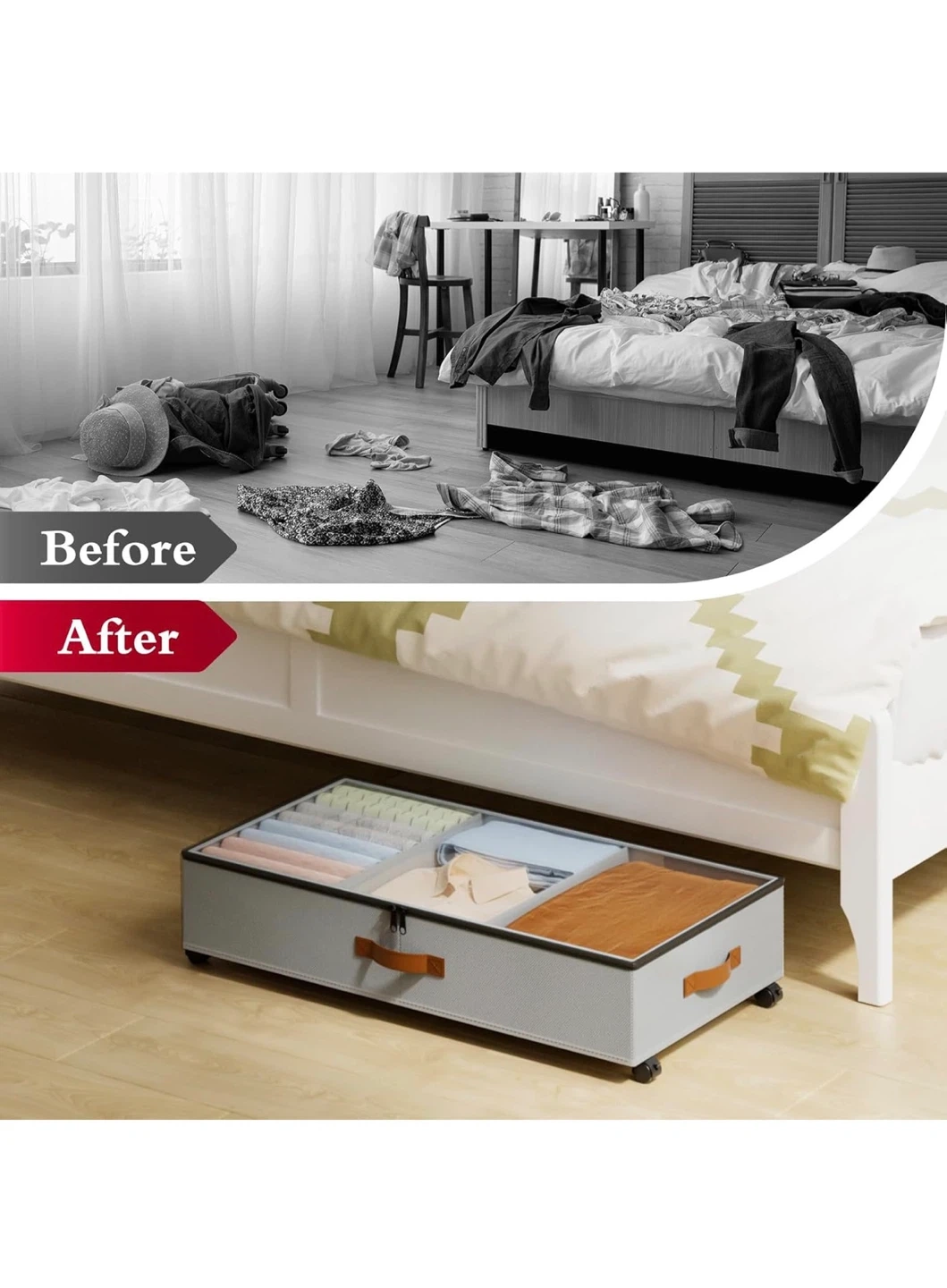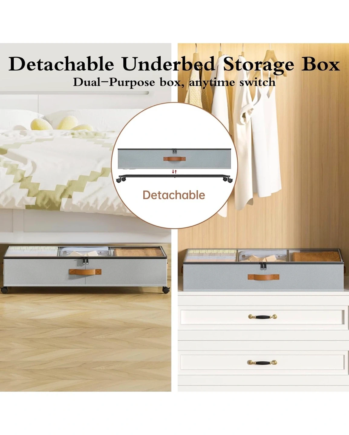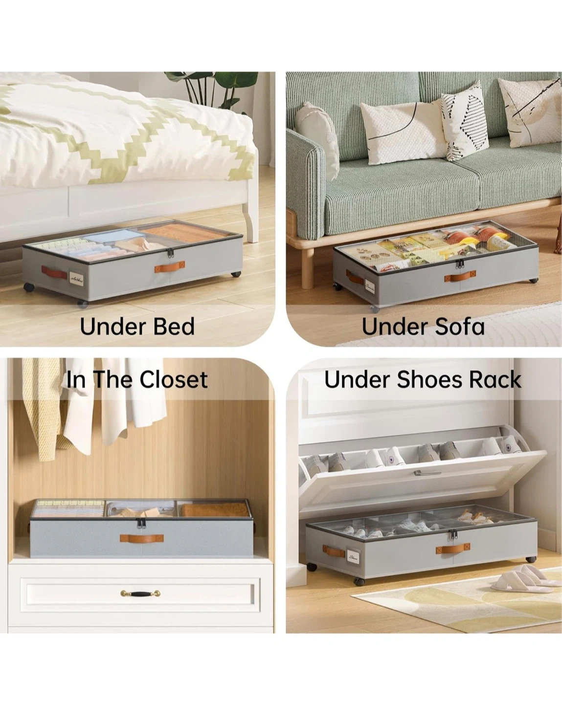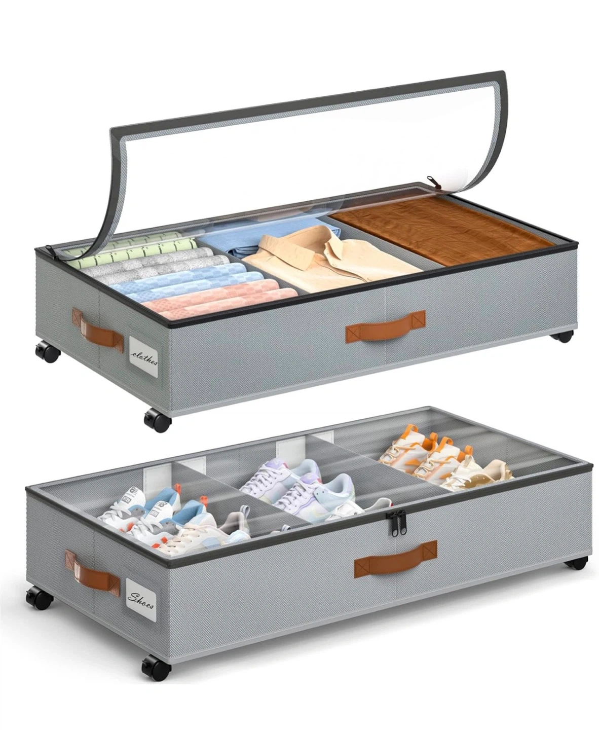61Declutter your space with this handy underbed storage box! It features adjustable dividers for customized storage, perfect for clothes, shoes, toys, and more. The 360° rotating wheels make it easy to pull out from any direction, even on carpet. - Dimensions: 33.3" x 16.5" x 6.7" - Applicable under-bed height: >7.0IN - Detachable design for versatile use