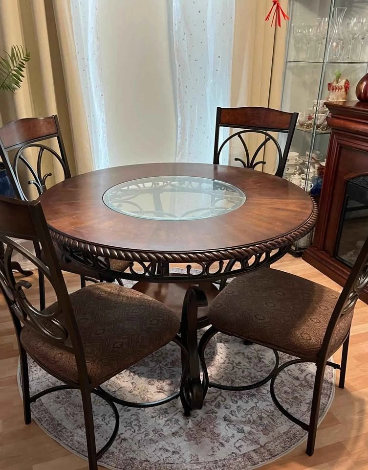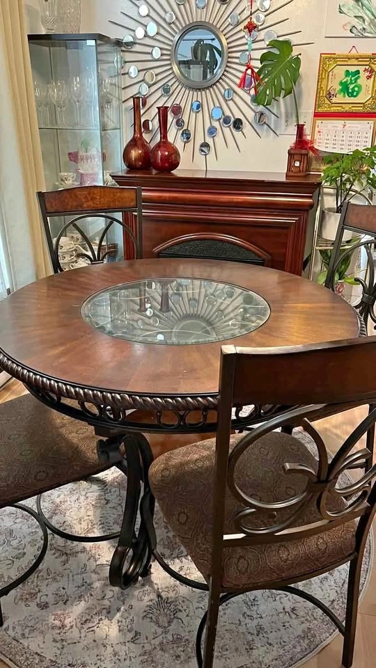 Dining Set with 4 chairs + Center table + round carpet all for $375.