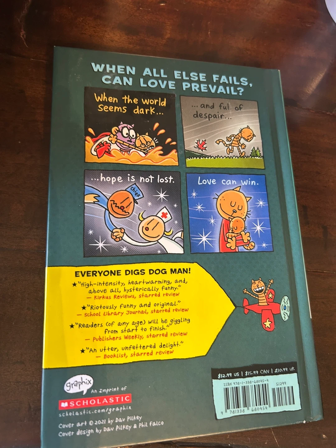 Selling a copy of Dog Man: Mothering Heights by Dav Pilkey! It's a heartwarming and funny read that kids and adults alike will enjoy. "Everyone digs Dog Man!"