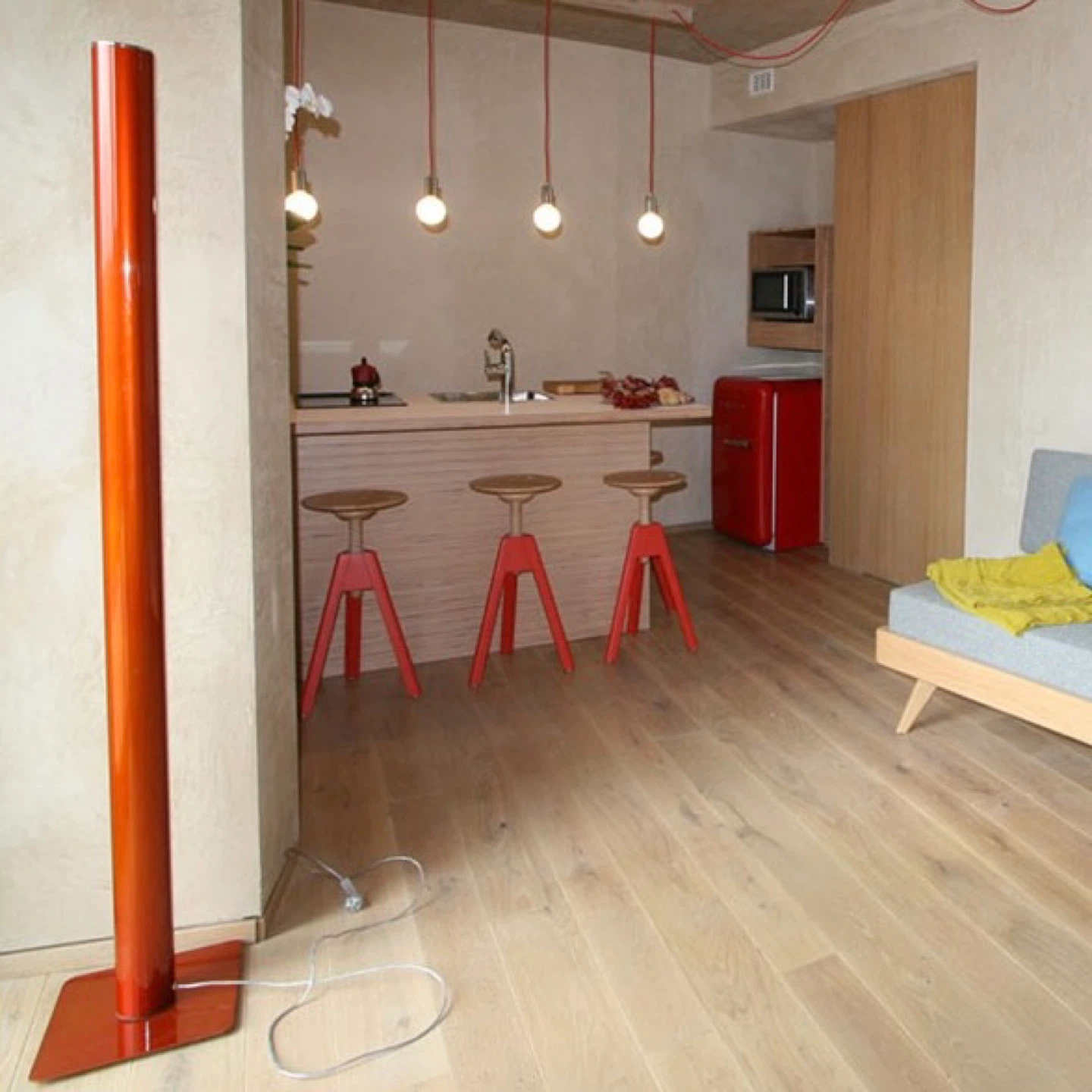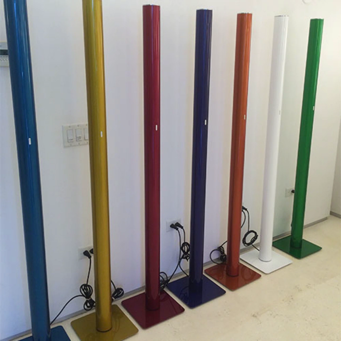 With simple geometry, stripped of all formal digressions and reduced to its basics, the Artemide Ilio Floor Lamp draws attention through saturated color, available in 7 variations. A mono-material aluminium cylinder supports a 39W LED optical engine on the top, which produces high efficiency diffused indirect light emissions. With a flow of more than 2700 lumens and an 80% yield, it ensures the general lighting of a room.