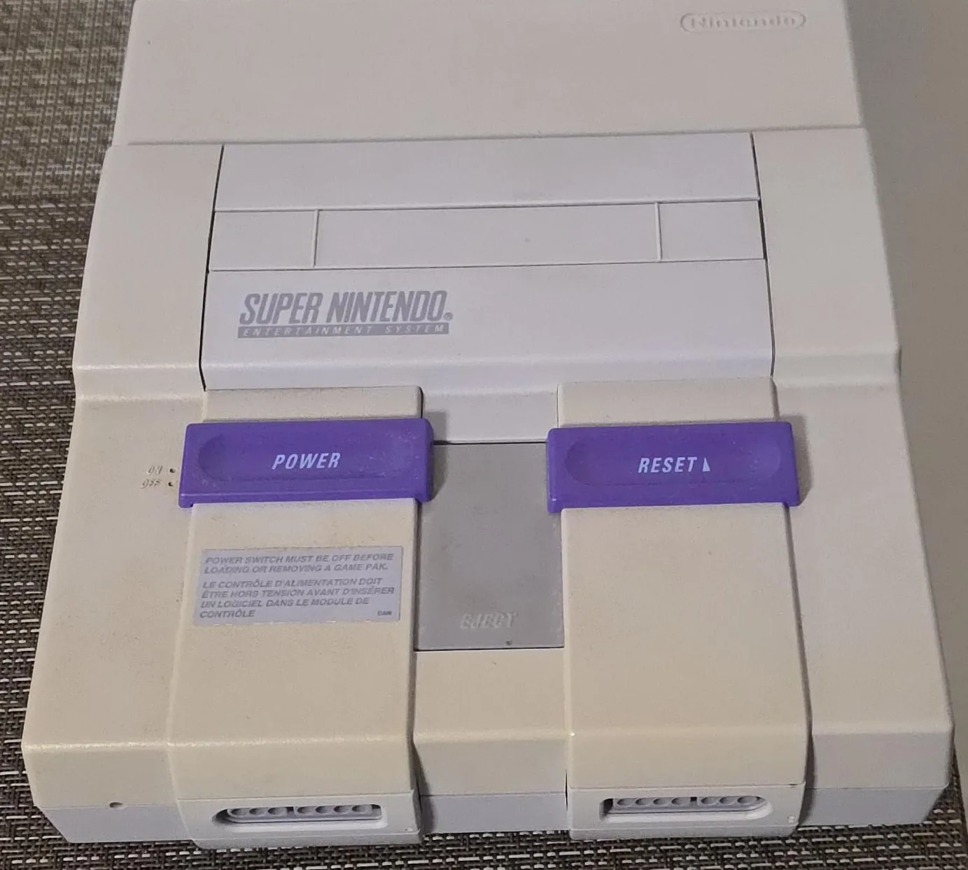 Selling a classic Super Nintendo Entertainment System (SNES)! It's in good working condition and ready for some retro gaming fun. Perfect for reliving old memories or introducing a new generation to classic games