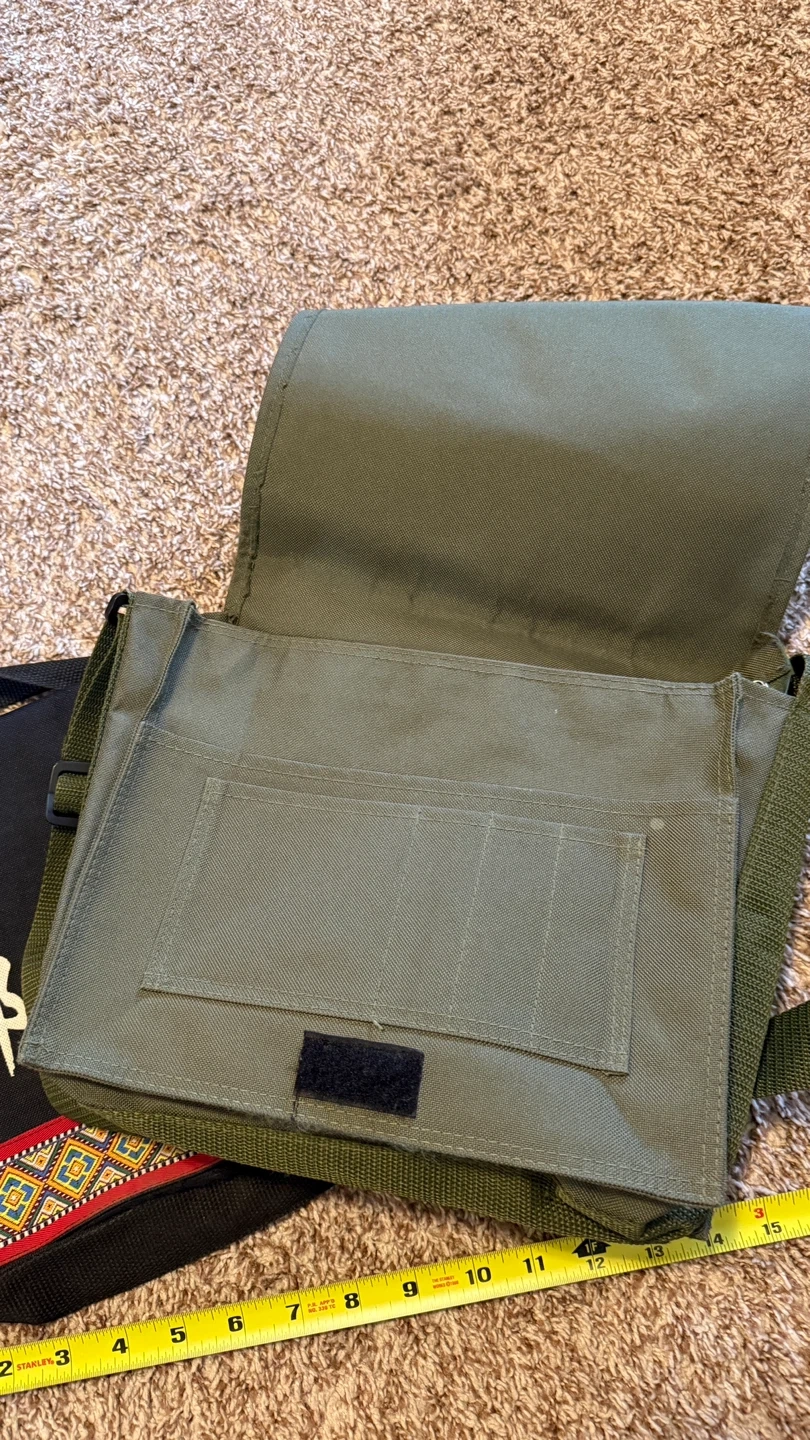 157Two Taiwanese 🇹🇼shoulder bags are available. One is black, and the other is olive green. Both bags have a colourful patterned trim and white lettering. PLEASE NOTE: Pickup in Tuscany area. Price is negotiable. Cash only. Please send me a message with date/time to pickup.