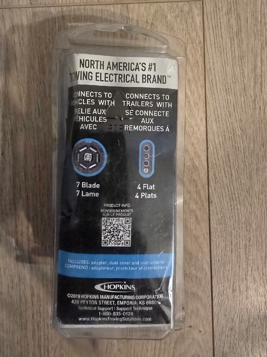Selling a brand new Hopkins 7 Blade to 4 Flat Adapter! This adapter is designed to connect vehicles to trailers. It includes the adapter, dust cover, and instructions. Perfect for your towing needs!