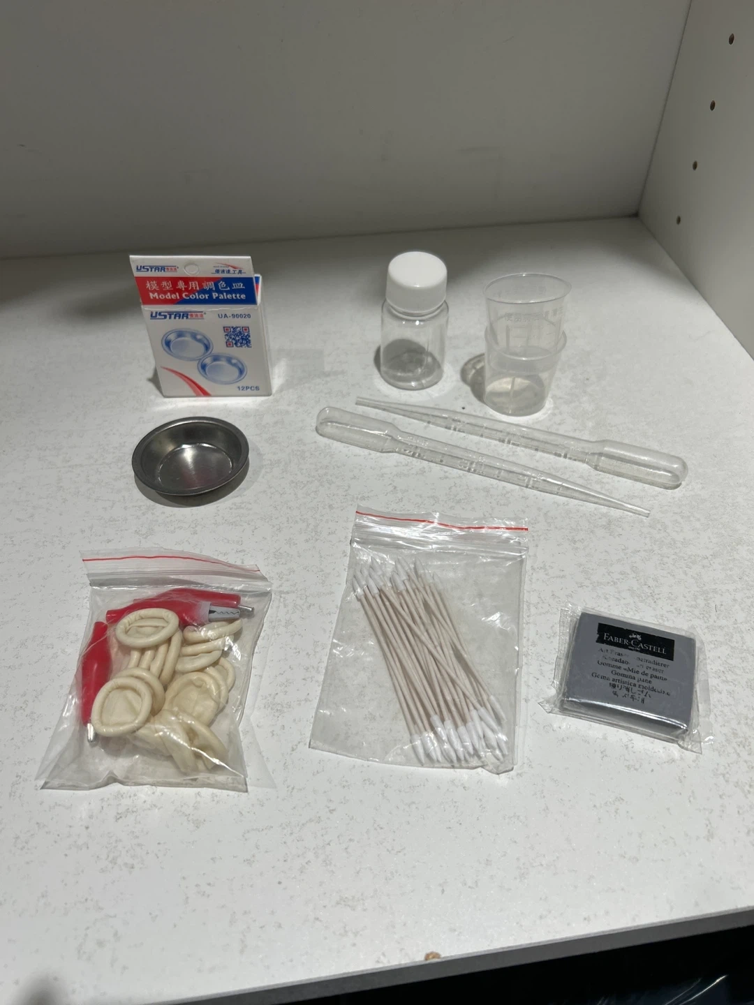 - Assorted tools like pipettes, cotton swabs, finger cots, and small containers