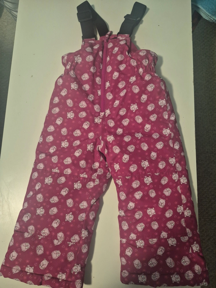 Gusti snow pants in size 3T. They have a cute pattern with penguins and hearts. Perfect for keeping your little one warm and dry this winter season