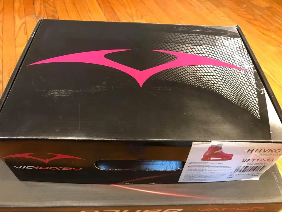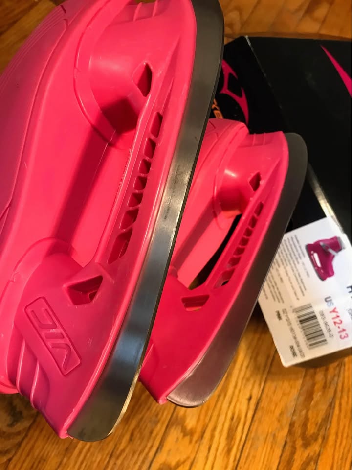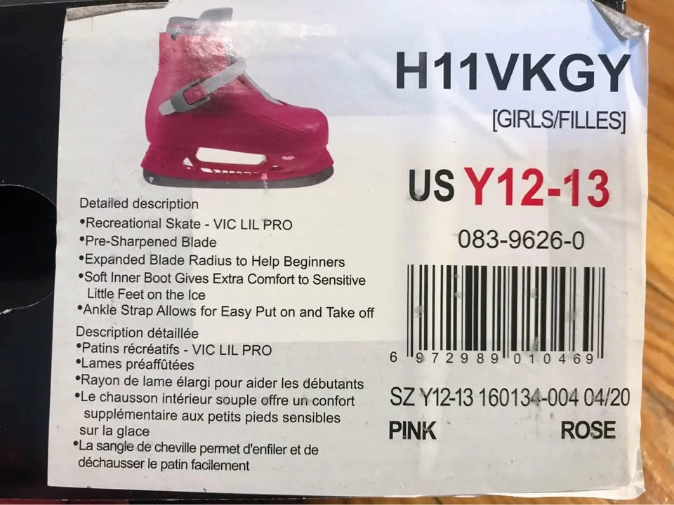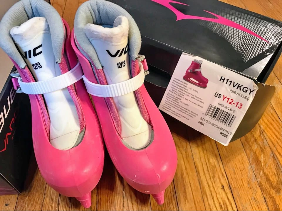 Be ready when Toronto city rinks open! These are a pair of lightly used VicHockey brand skates. We loved the quick ankle strap clip, so easy to take on and off. Size Y12-13. Paid $50 at Canadian Tire, now available new for $41 if you can find your size.