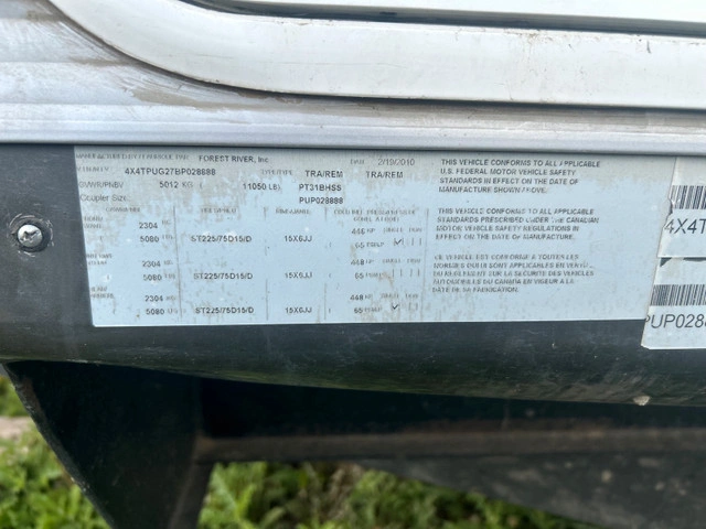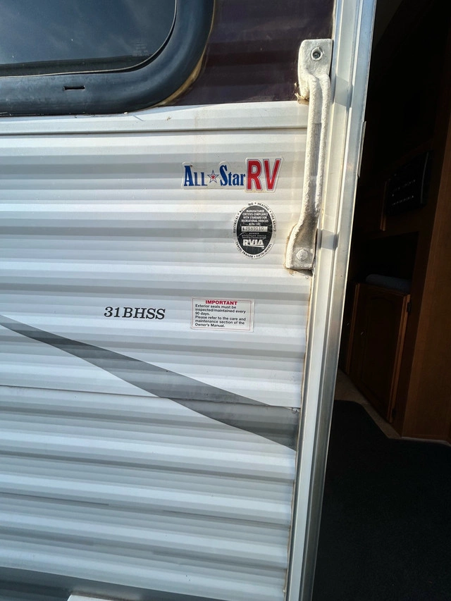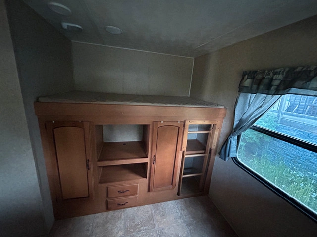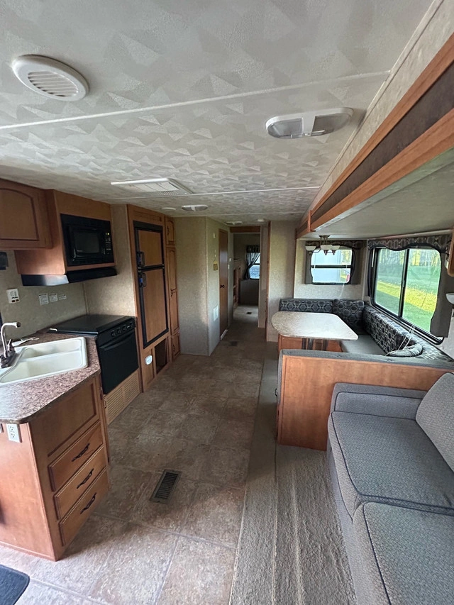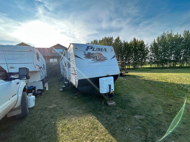 2011 31foot bumper hitch. Half ton rated! Two slides, one for the kitchen area and the other for the bunk house that has three beds in it! Lots of storage inside and out, including under the master bedroom bed, full cross through storage in the front, under the couch, wrap around kitchen seats, and a large storage area on the right rear corner. Plus numerous cupboard spaces. All appliances work. Two full propane bottles. Three piece bathroom with small tub and outside shower option. The bathroom is accessible from inside and outside of the trailer. Trailer is ready to be sold and to go camping! Just needs to have plumbing antifreeze removed from the lines! And your belongings put into it! Call me or text! Owen @ 780-919-1590. I live 15 minutes north of Edmonton!