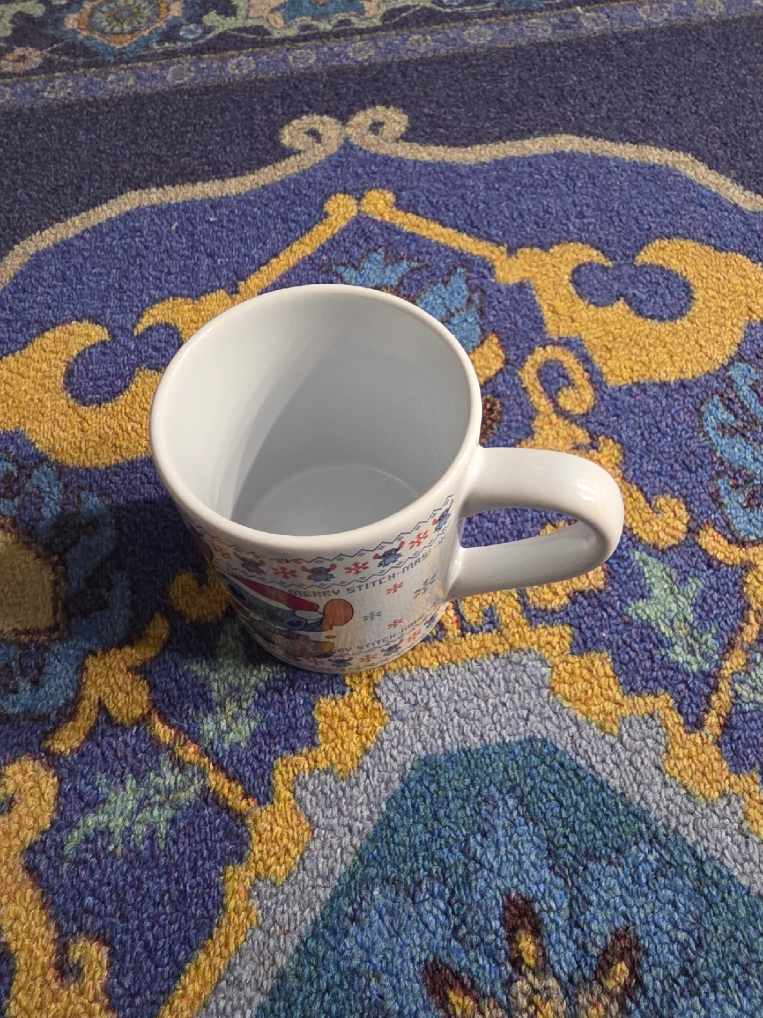Selling a cute Disney Stitch Christmas mug! It's a 14 oz ceramic mug, perfect for enjoying your favourite warm beverage during the holidays. It features a festive Stitch design and is safe to use in both the microwave and dishwasher. Made in China