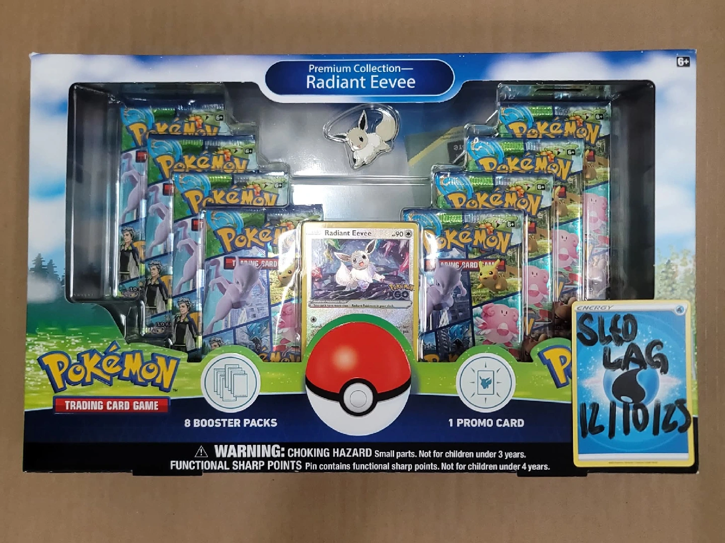 23Selling a Pokemon Trading Card Game Radiant Eevee Premium Collection box! It includes 8 booster packs and 1 promo card. The box also includes a Radiant Eevee pin. Great for any Pokemon fan!