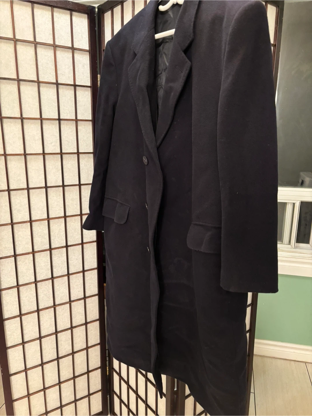 Selling a lovely black cashmere coat from Hyatt Pierre. The coat is size 50 and is made of finest quality cashmere. It's in great condition and ready for a new home!