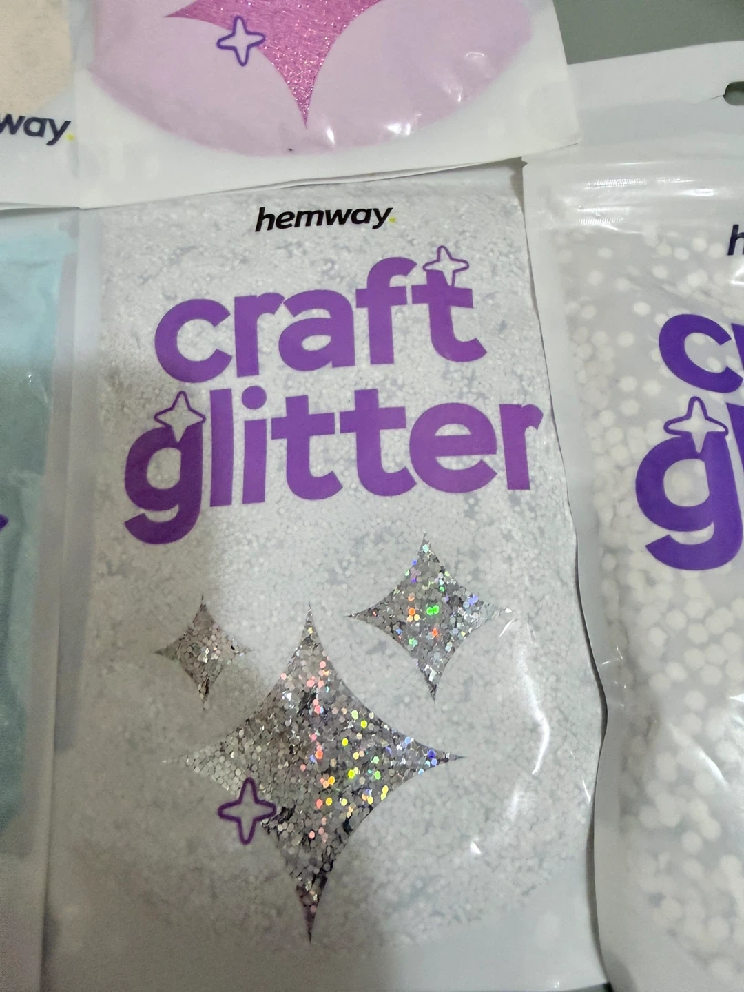 I'm selling some Hemway craft glitter and glitter paint additive. They are all brand new and ready for your next project! Available in gold glitter paint additive, pink craft glitter, blue craft glitter, silver craft glitter, and white craft glitter