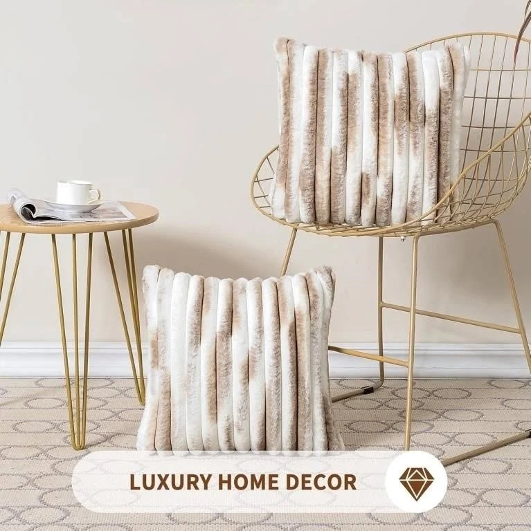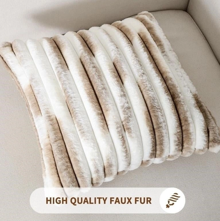 Set of 2 Soft Striped Faux Fur Pillow Covers 18 x 18 cm