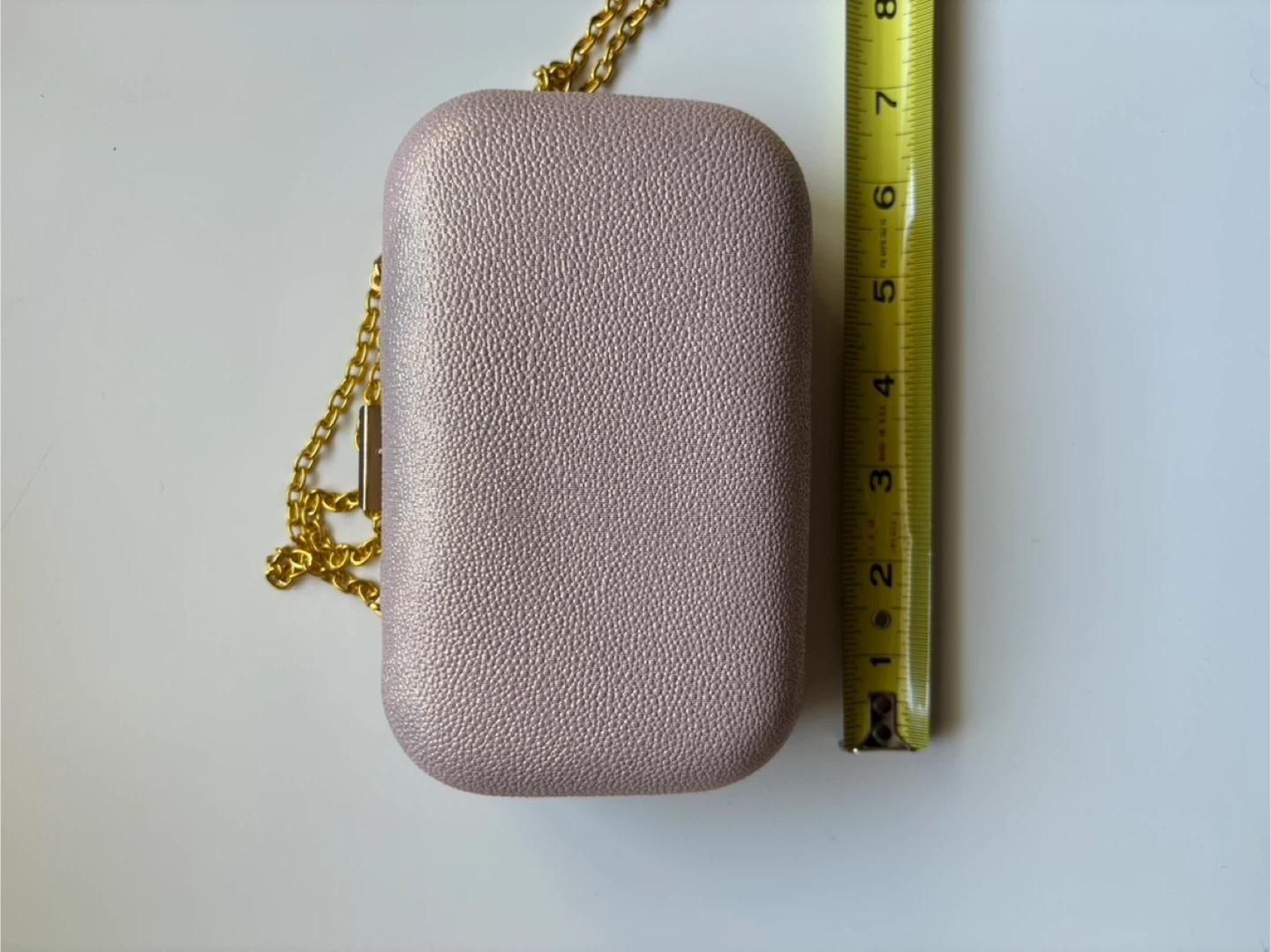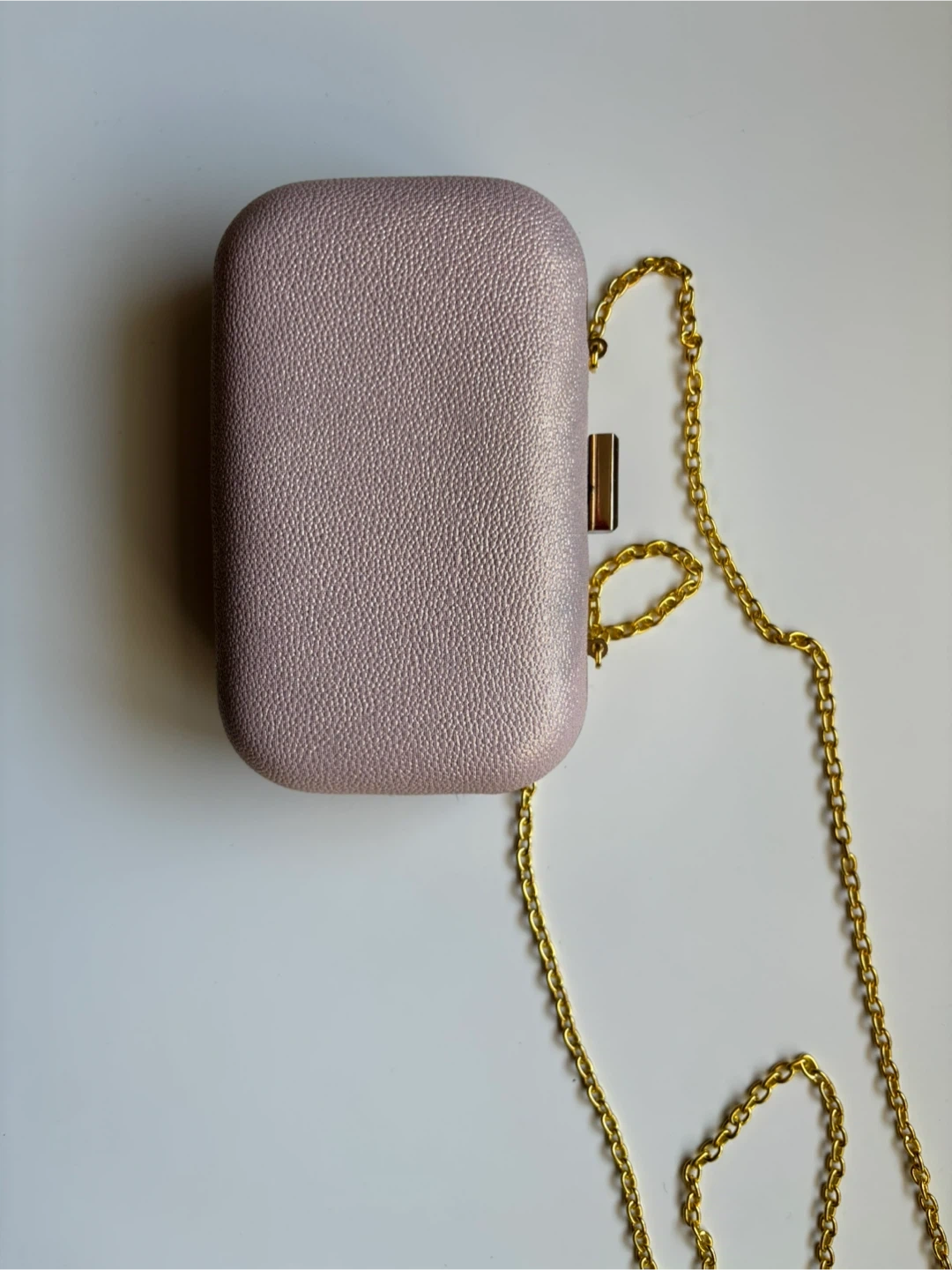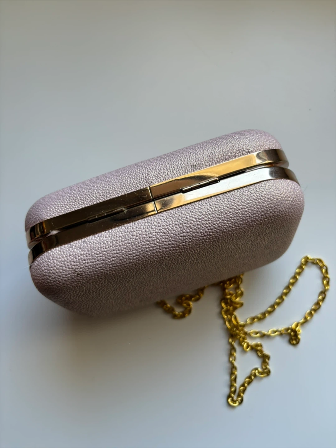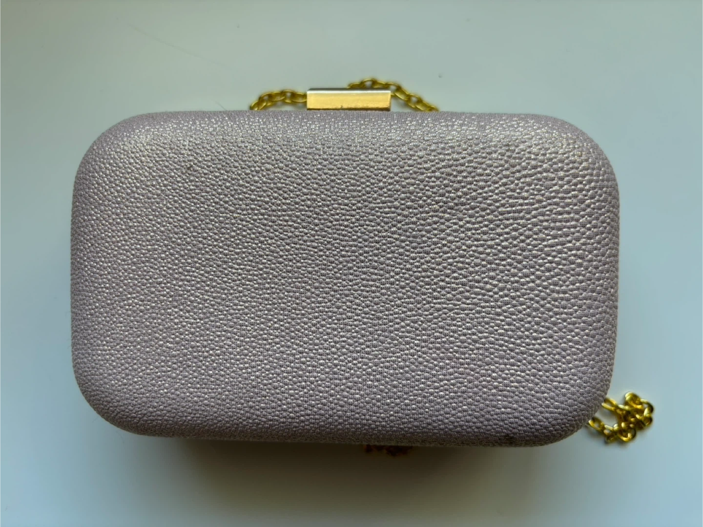 This is a Miss Delacour evening clutch, perfect for a night out. It features a delicate chain for easy carrying. The clutch is in great condition and ready to add a touch of elegance to your outfit