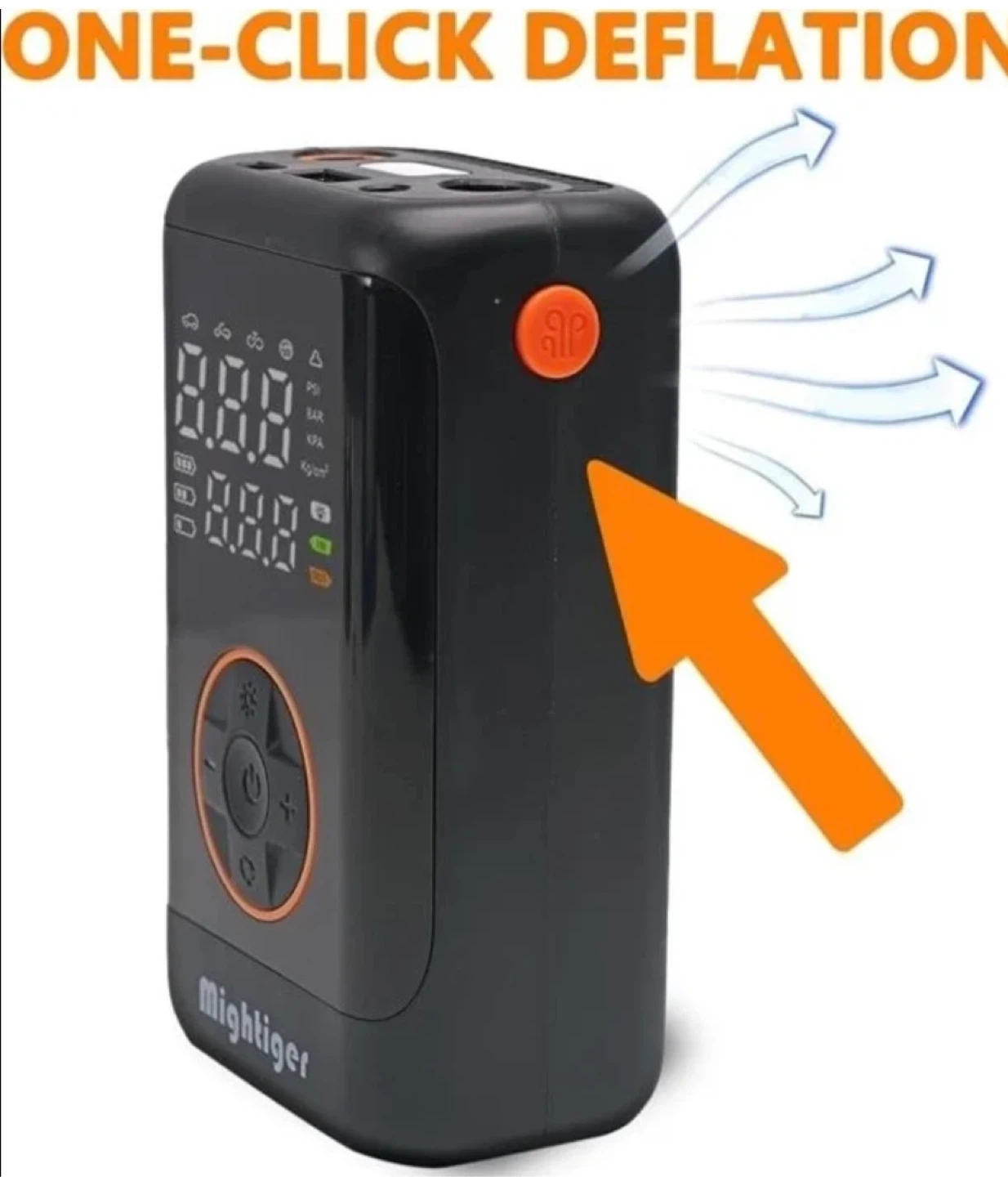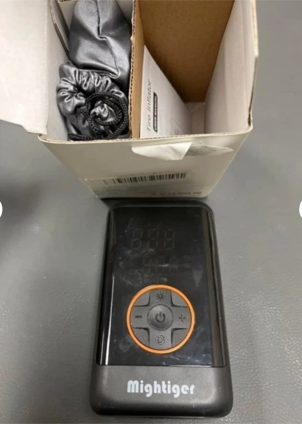 Selling a Mightiger portable tire inflator! It comes with all the accessories you see in the pictures, including the box. Great for keeping in your car for emergencies or topping up your tires on the go