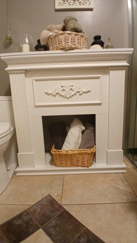 Selling a charming white decorative fireplace cabinet! It's perfect for adding a touch of elegance to any room. It features a lovely design and can be used for storage or display