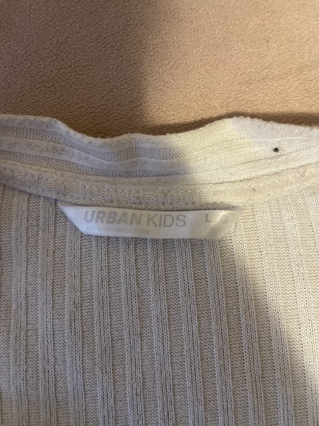Here's a cute white cardigan from Urban Kids! It's a size large and in great condition. Perfect for layering or wearing on its own