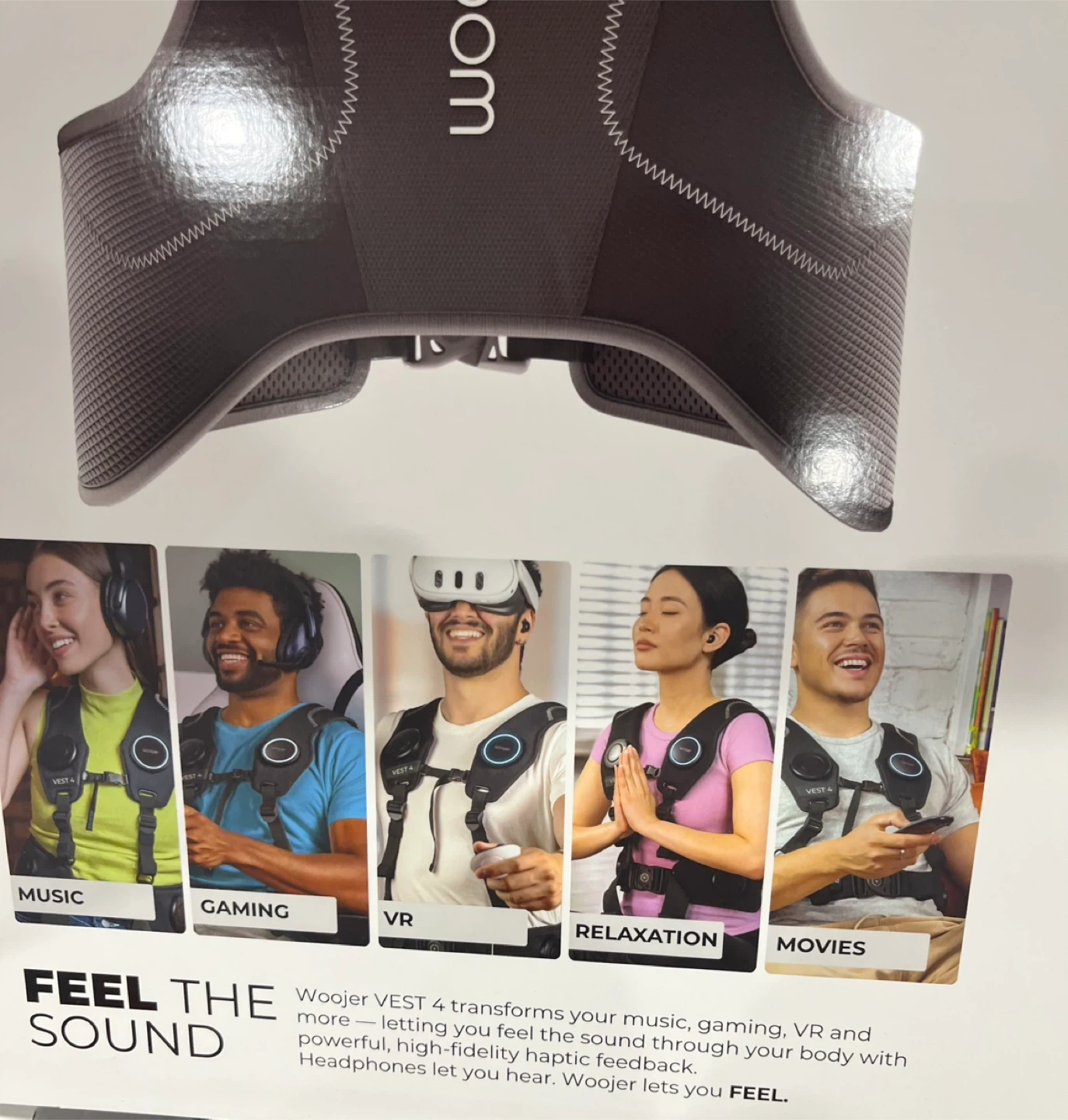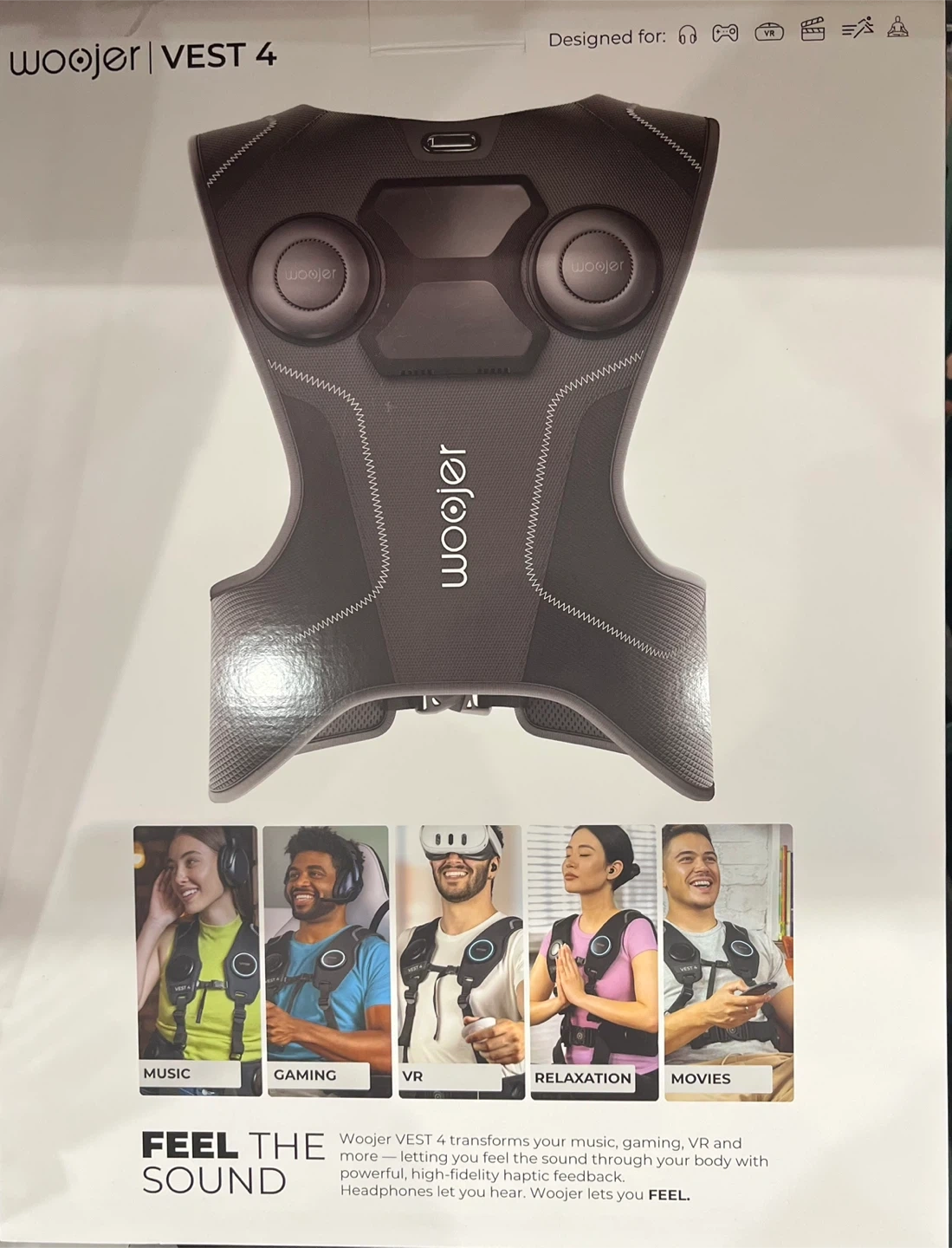 WooJèr VEST 4 transforms your music, gaming, VR and more by letting you feel sound through your body with powerful haptic feedback. It's designed for immersive audio experiences. This vest allows you to truly feel what you hear!